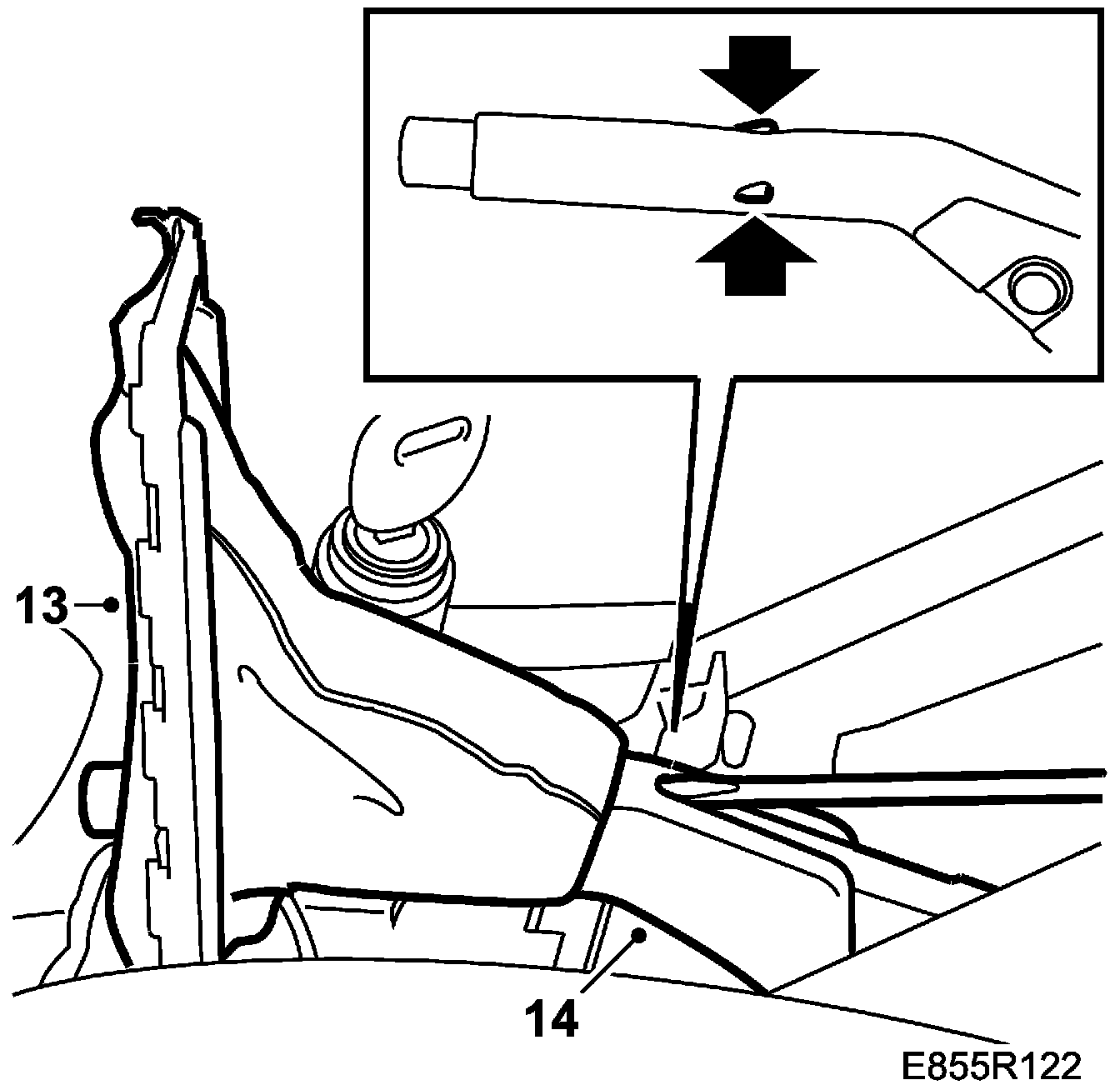 13. Pull the gaiter forwards over the lever (destructive removal).