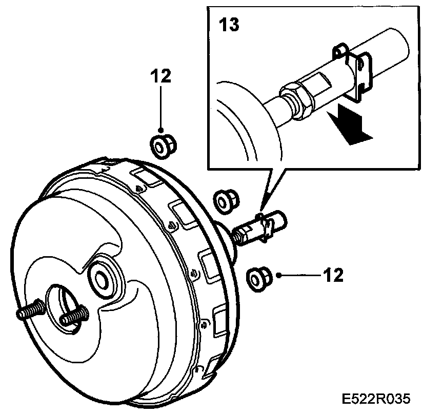 17. If fitting a replacement unit, transfer the bracket to the new brake servo.