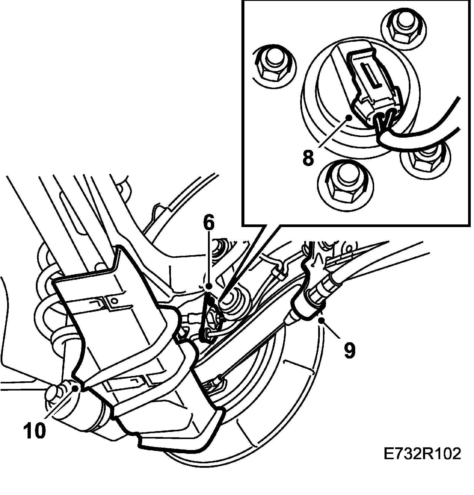 10. Remove the mounting for the wheel sensor cable and brake pipe (2 nuts).