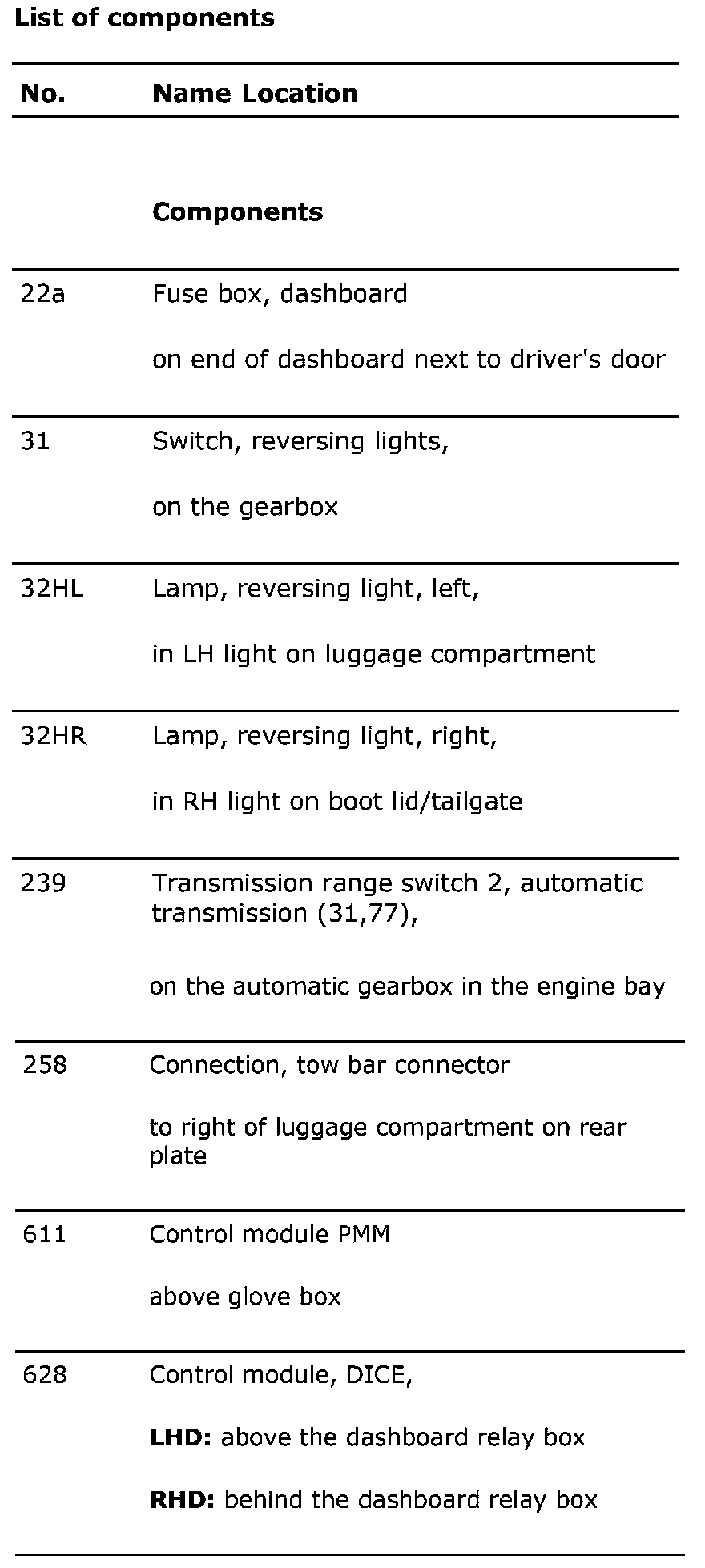 List of components