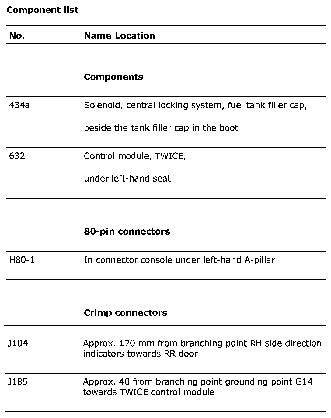 Component list
