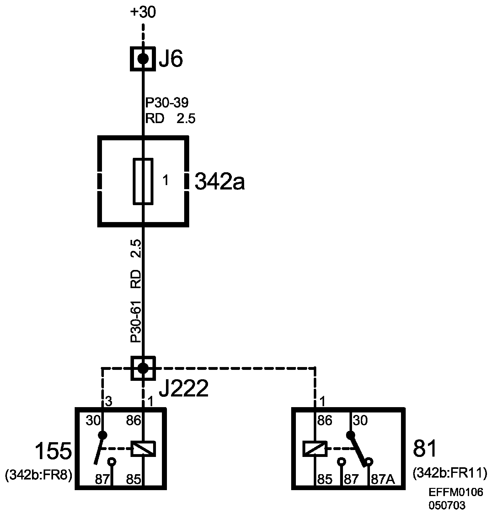 Power Supply Diagrams: The diagrams for the power supplies that may be feeding this system (+30, +15, +54, +X and +B) can be found at Power and Ground Distribution diagrams. Electrical Diagrams