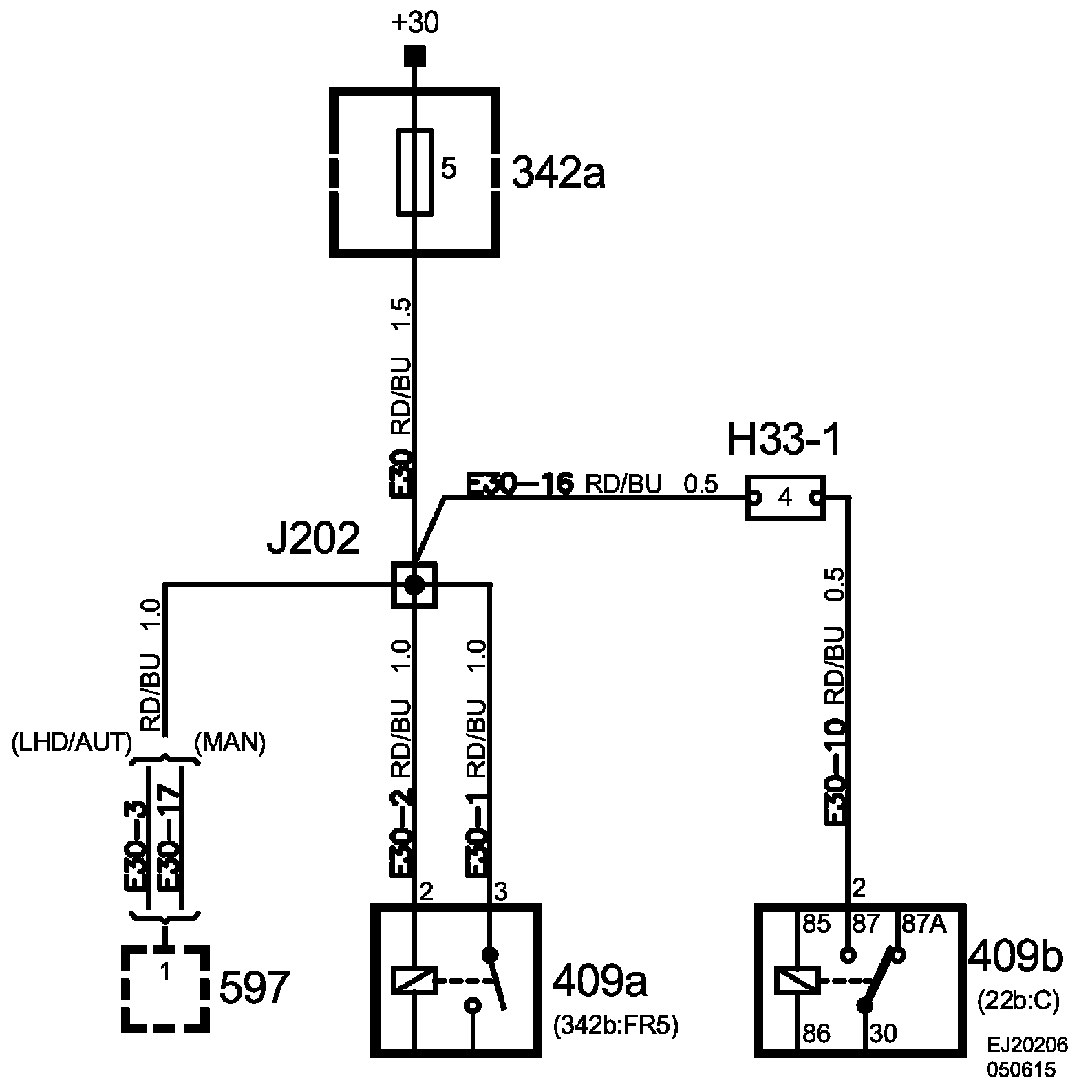 Power Supply Diagrams: The diagrams for the power supplies that may be feeding this system (+30, +15, +54, +X and +B) can be found at Power and Ground Distribution diagrams. Electrical Diagrams