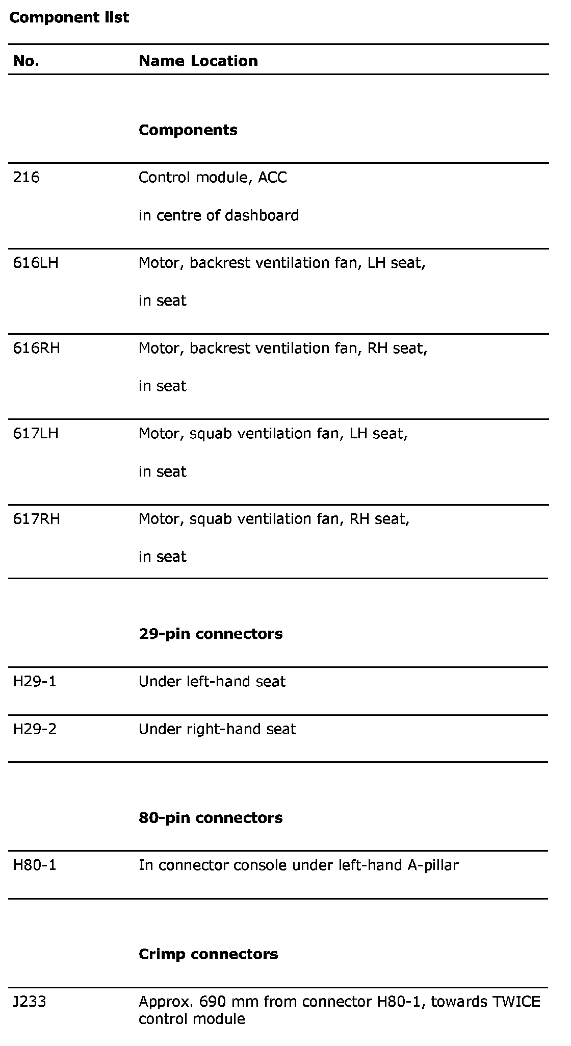 Component list