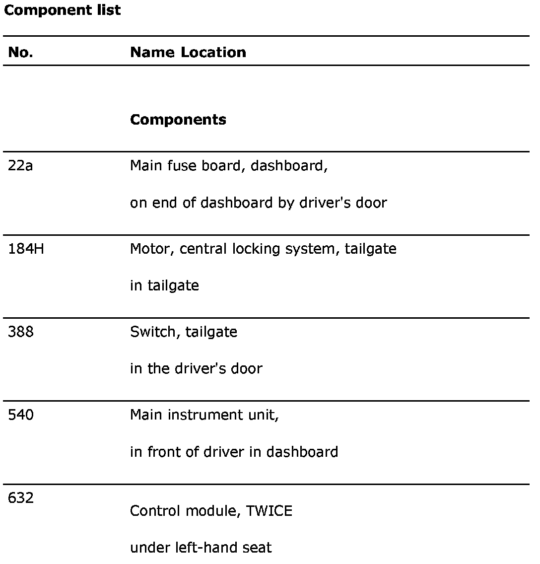 Component list
