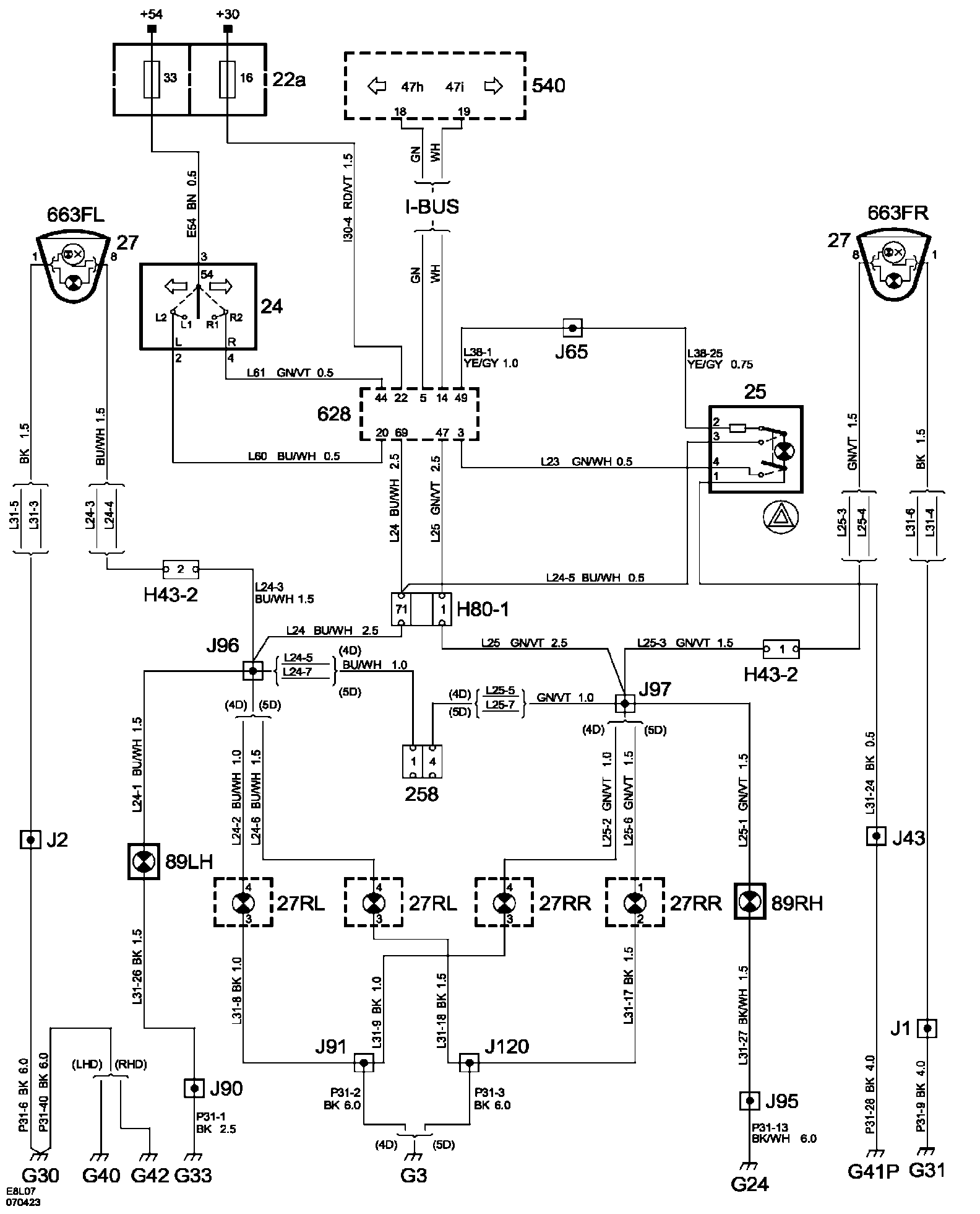 The diagrams for the power supplies that may be feeding this system (+30, +15, +54, +X, and +B) can be found at Power and Ground Distribution diagrams. Electrical Diagrams