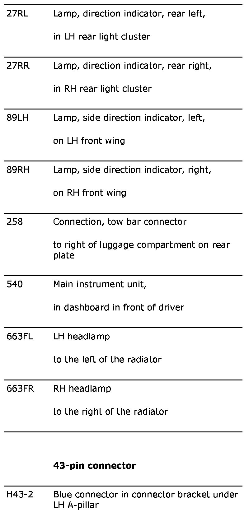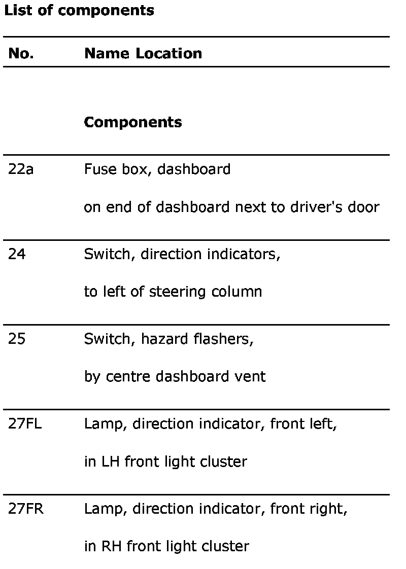 Direction Indicators, Hazard Flashers: