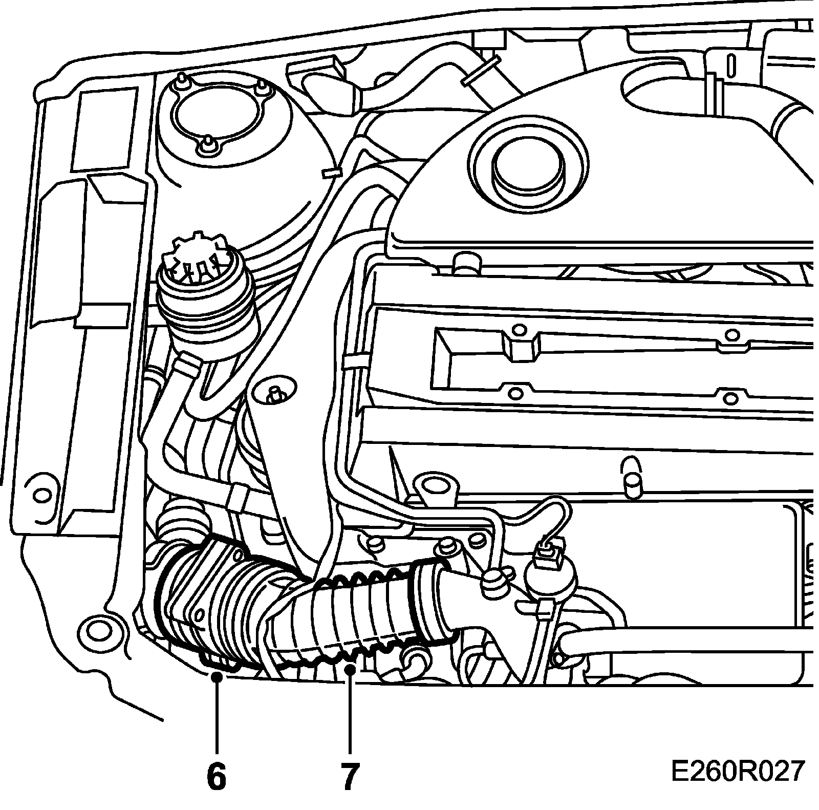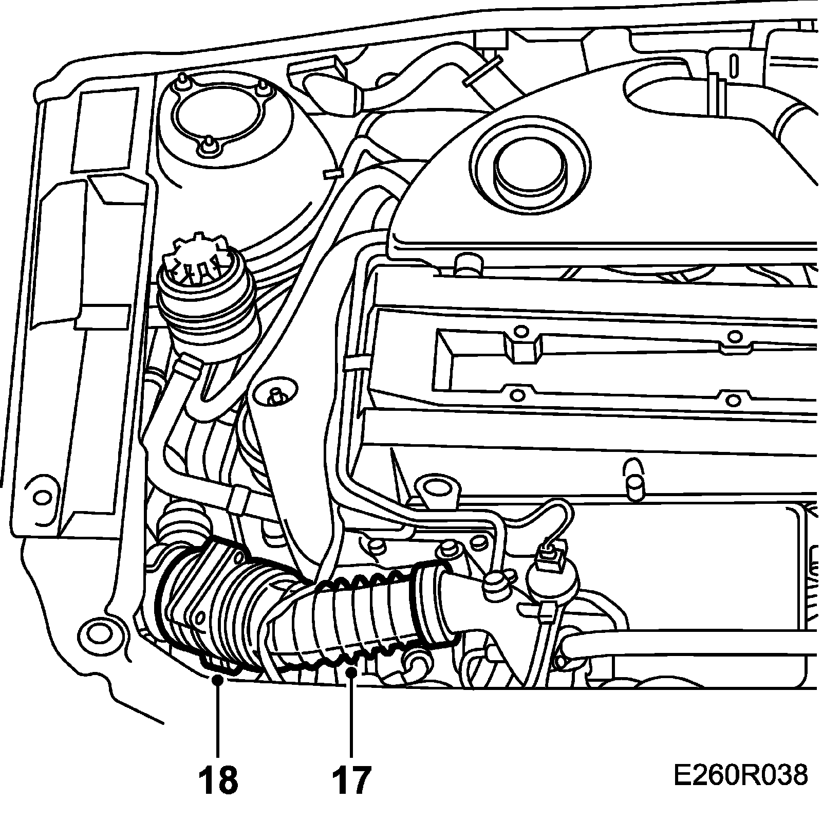 15. Fit the crankcase breather pipe to the turbo intake pipe.