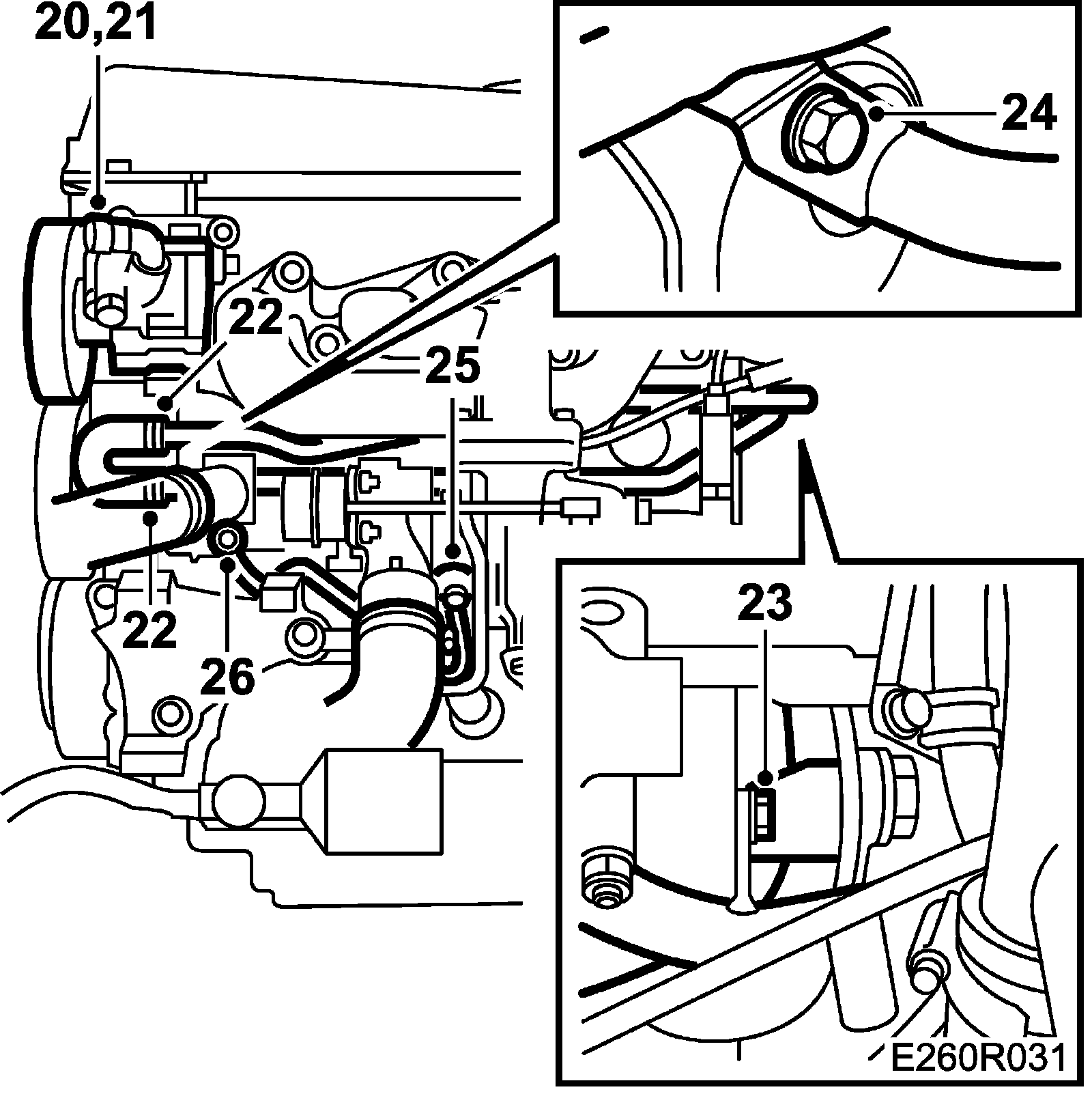 20. Start the engine and warm it up without load, preferably at varying speeds until the radiator fan cuts in.