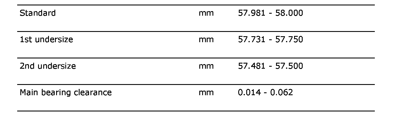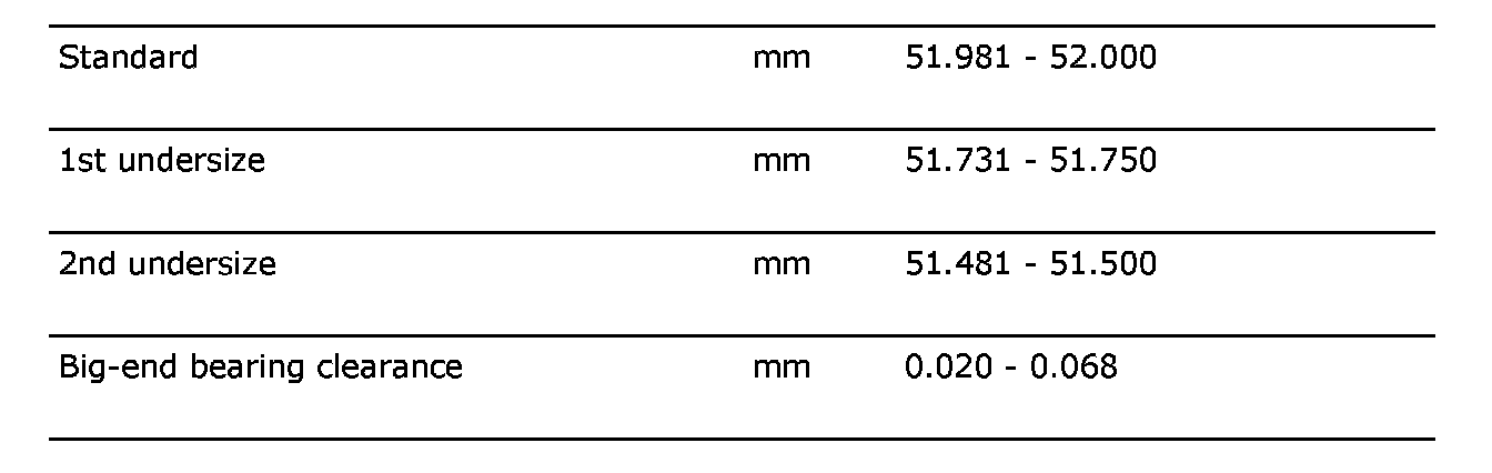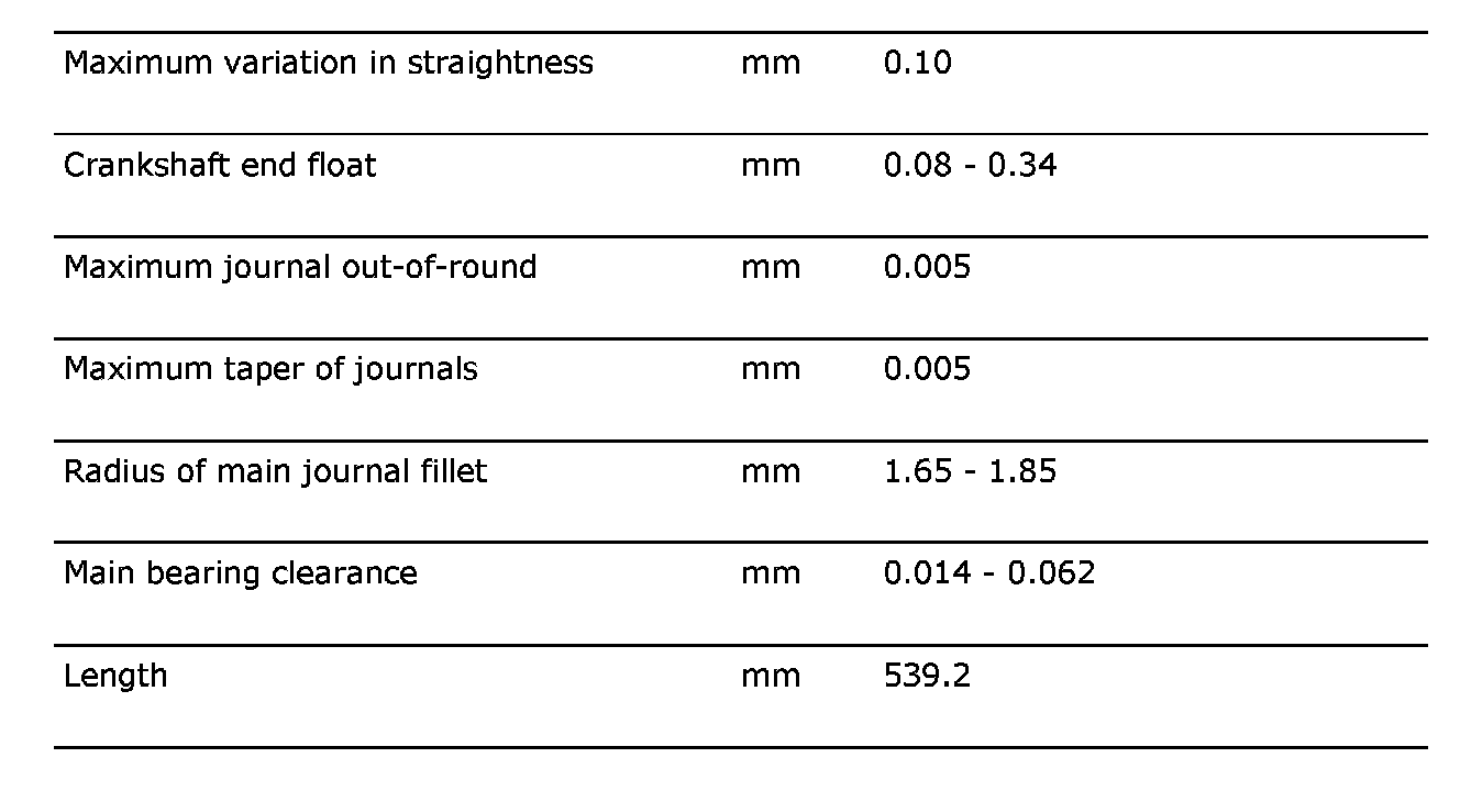 Crankshaft: Specifications