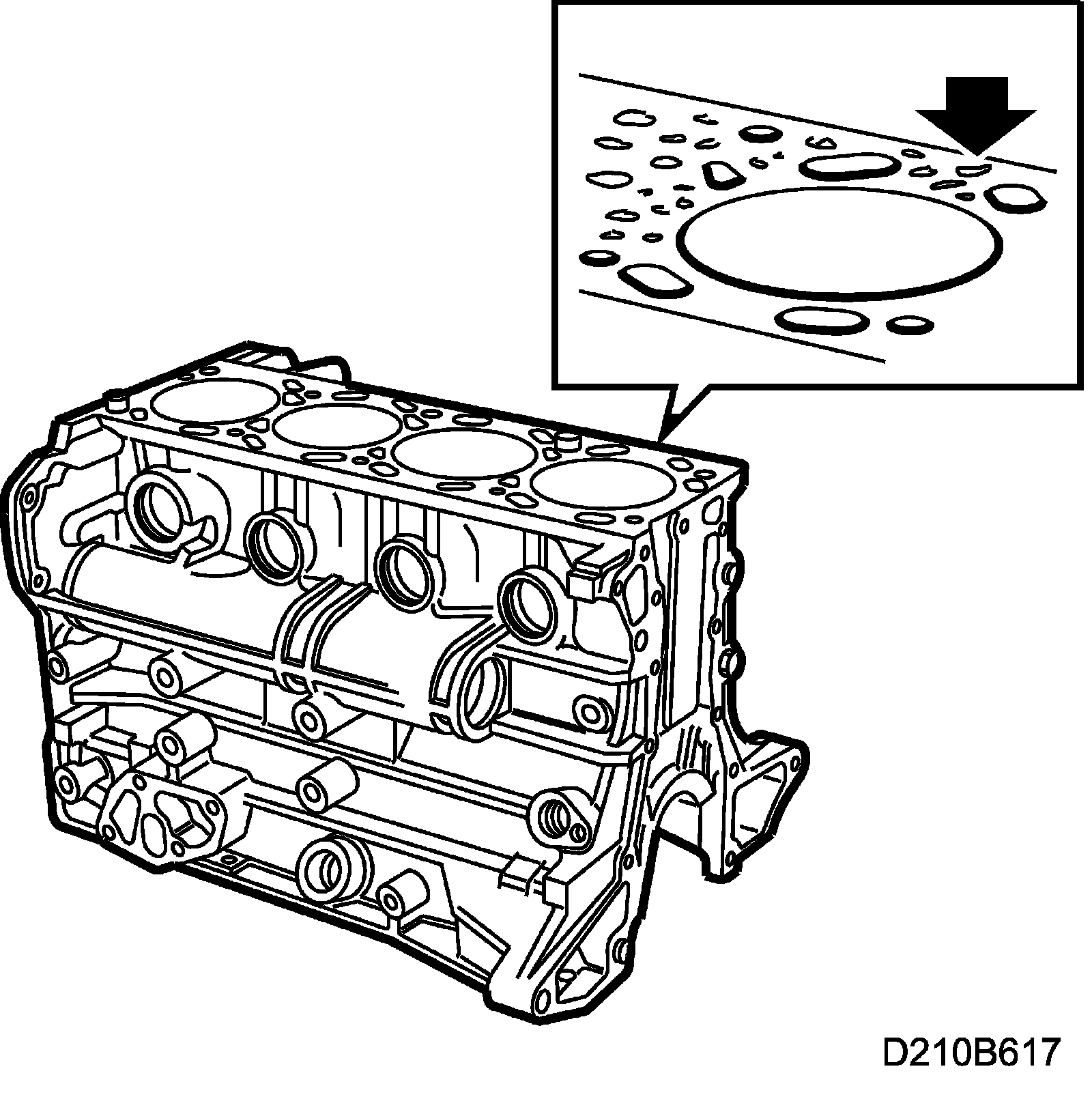 Under certain conditions, the cylinder block's surface sealing to the cylinder head can become pitted due to prolonged leaks in the cylinder head gasket. The pitting arises in the area around the engine coolant passageways.