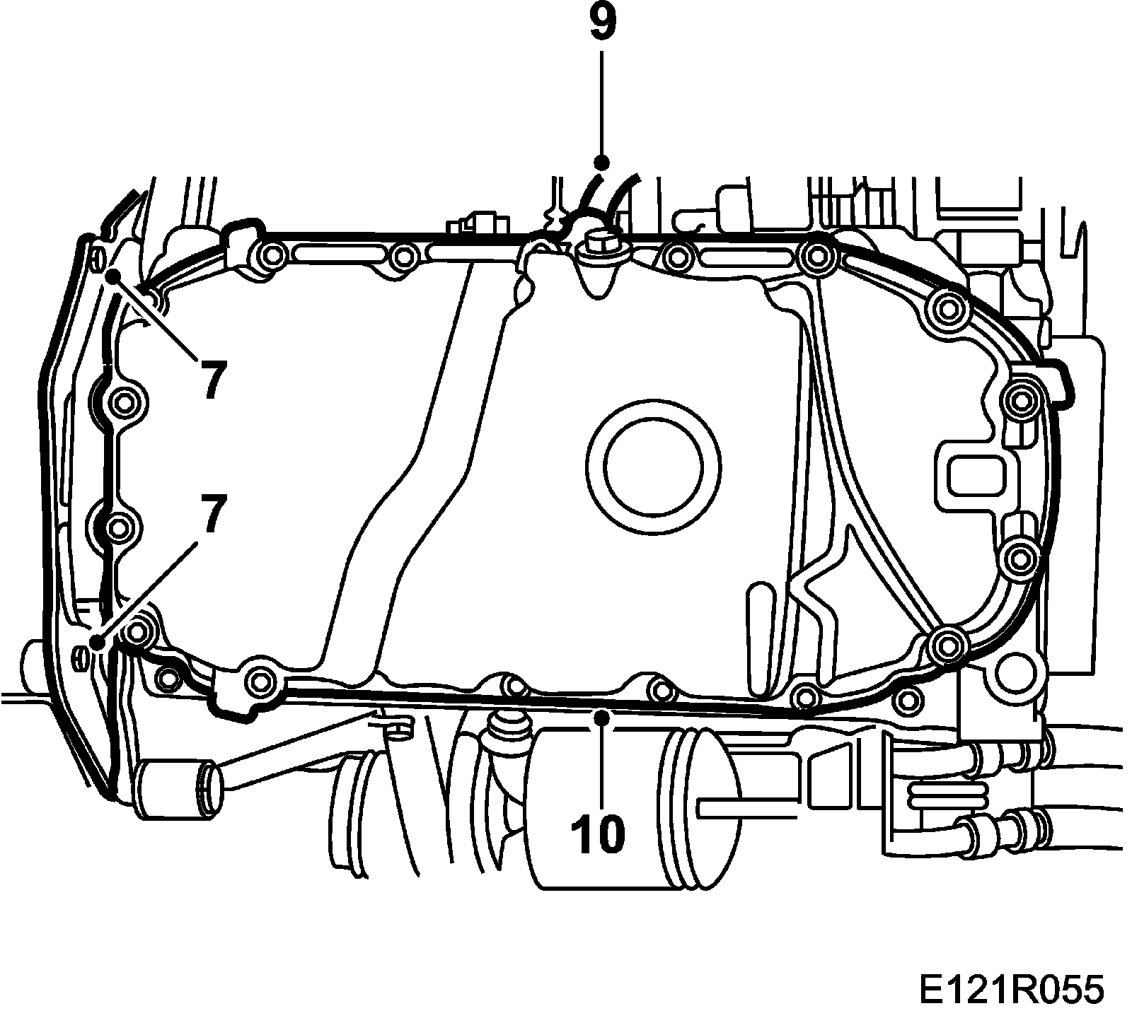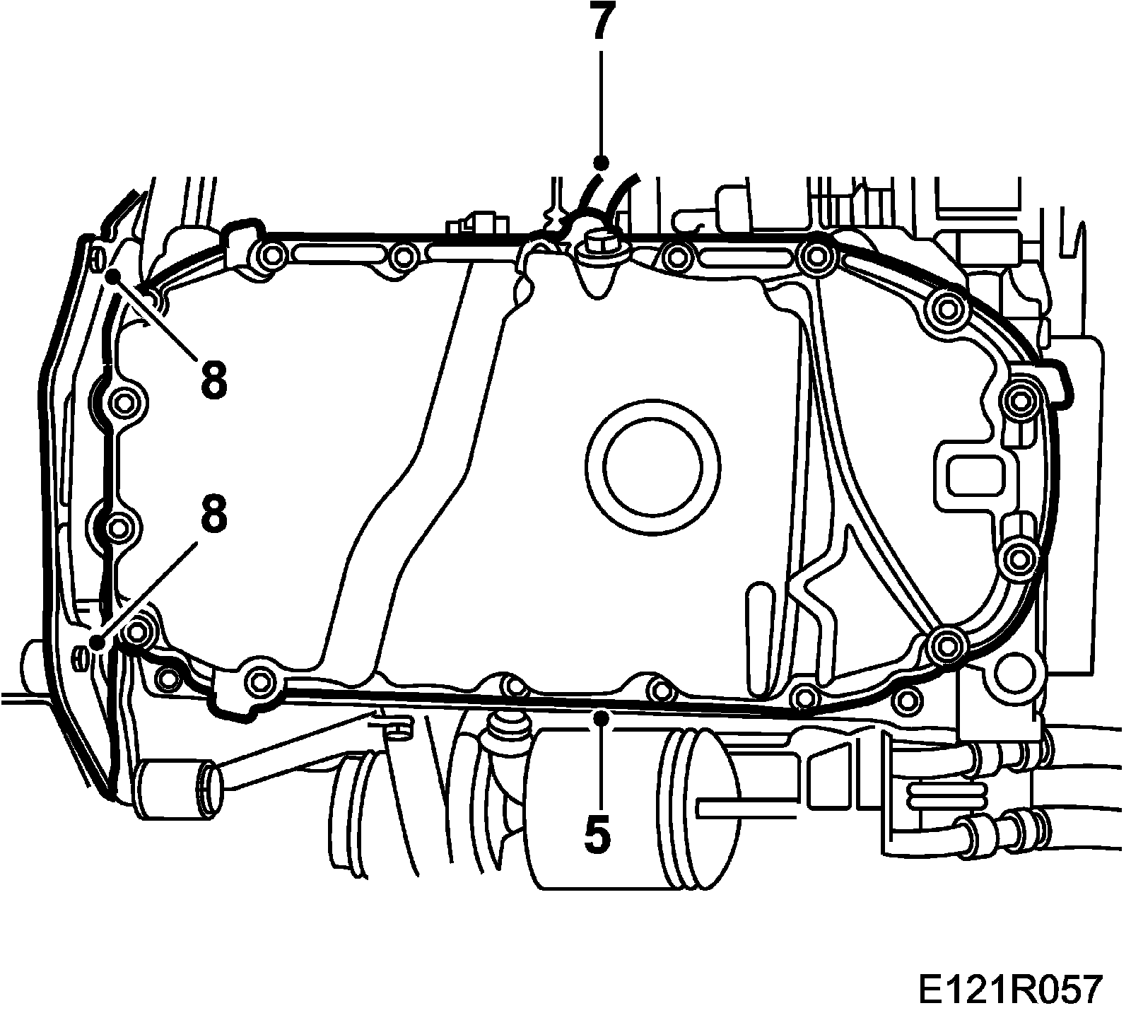 3. Apply an approximately 2 mm thick bead of flange sealant, part No. 93 21 795 to the oil sump seals.