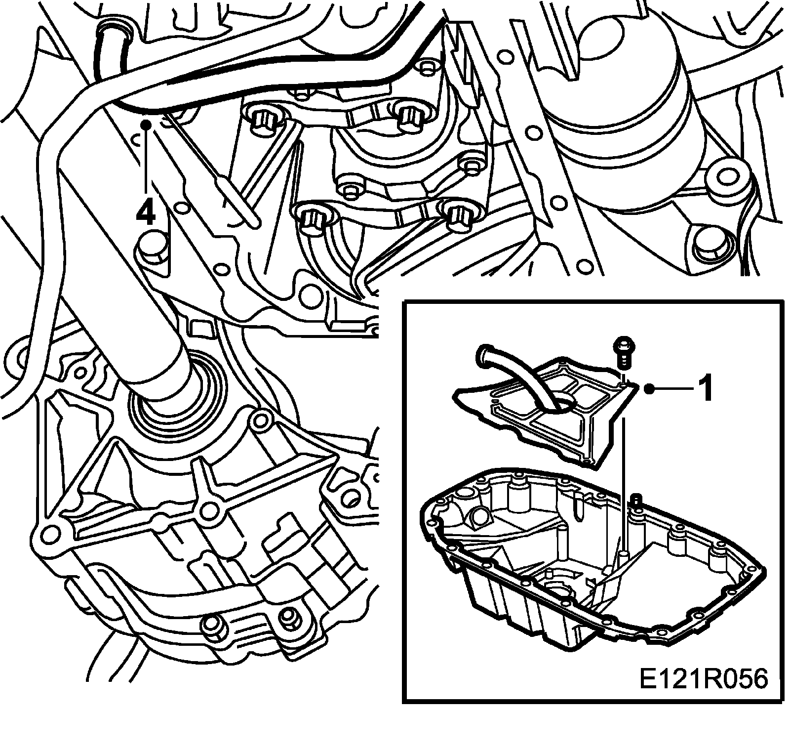 4. Check that the pipe to the oil adapter is securely in place and that it positioned correctly in the oil sump. Change the O-rings if necessary.
