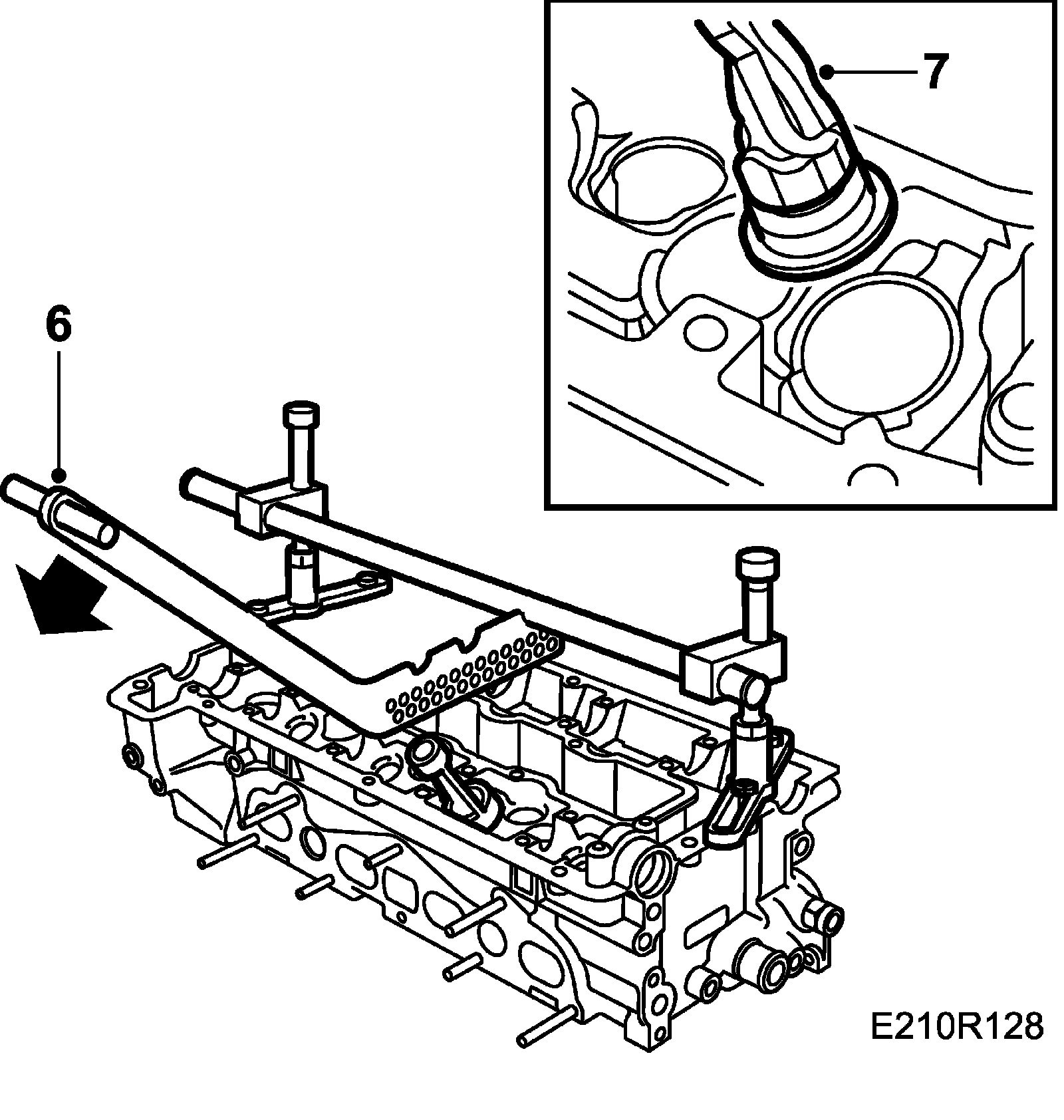 7. Lift out the spring cap and valve spring and remove the washer with valve guide seal using 83 94 157 Pliers, valve guide seal.