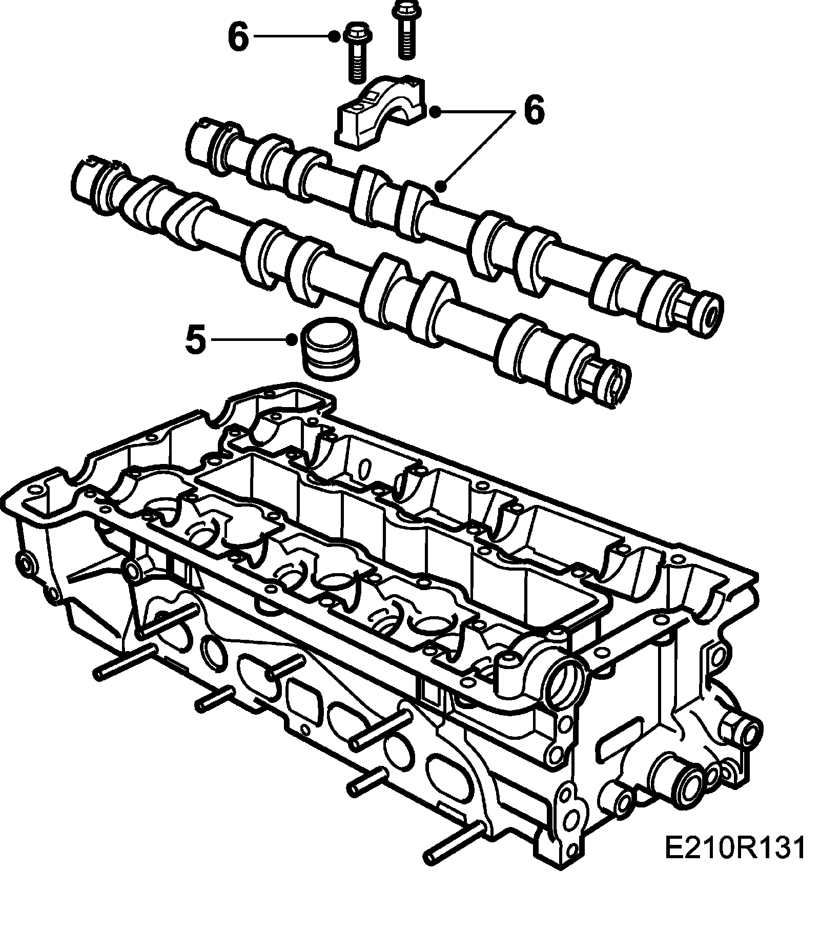 6. Fit the camshafts and bearing caps, starting where the cams point downwards and press on the tappets. Bearing caps marked 1-5 for the inlet side, 6-10 for the exhaust side.