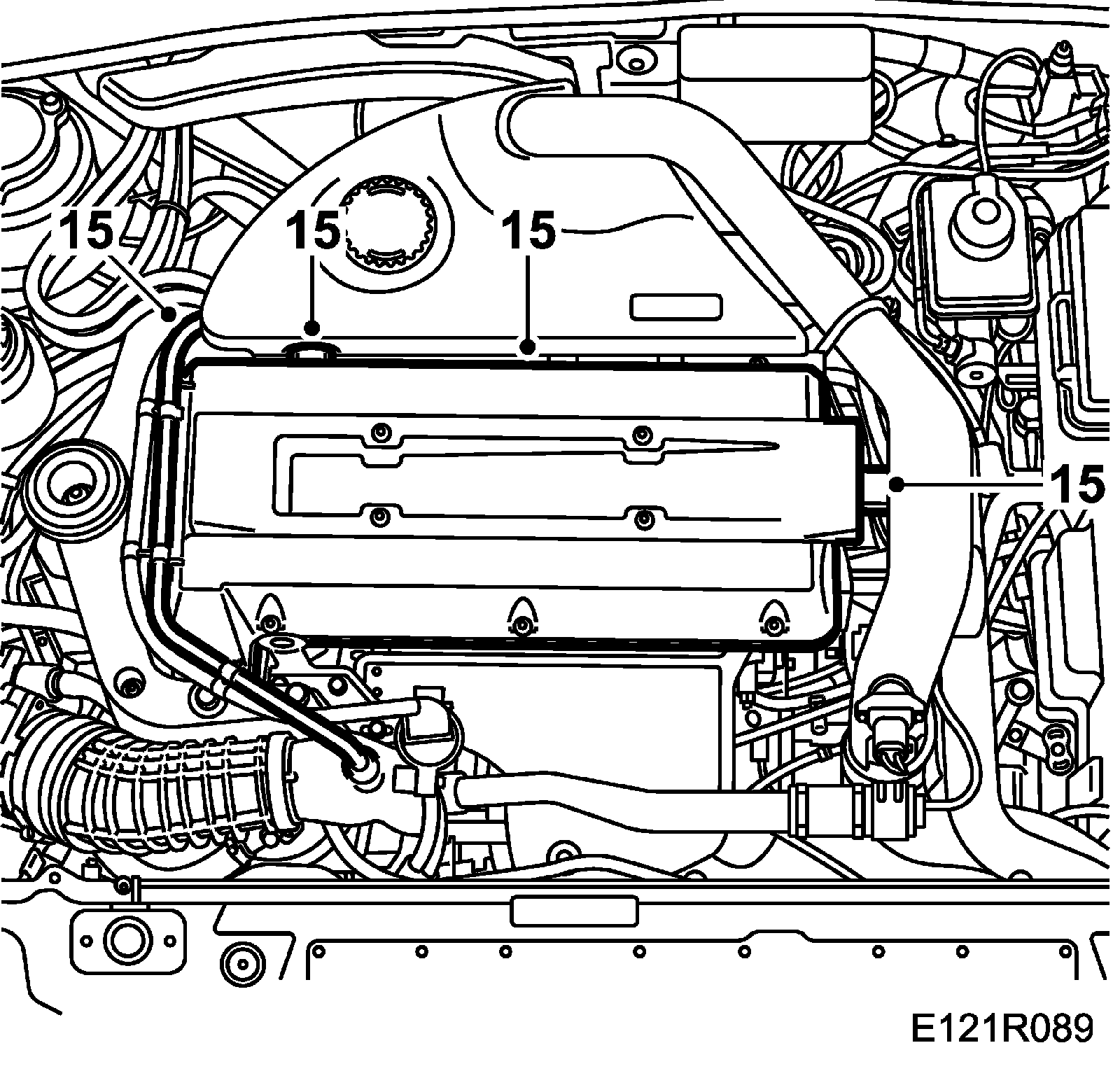 15. Fit the nipple for crankcase ventilation and vacuum for the camshaft cover. Refit the bolt securing the crankcase breather pipe on the camshaft cover.