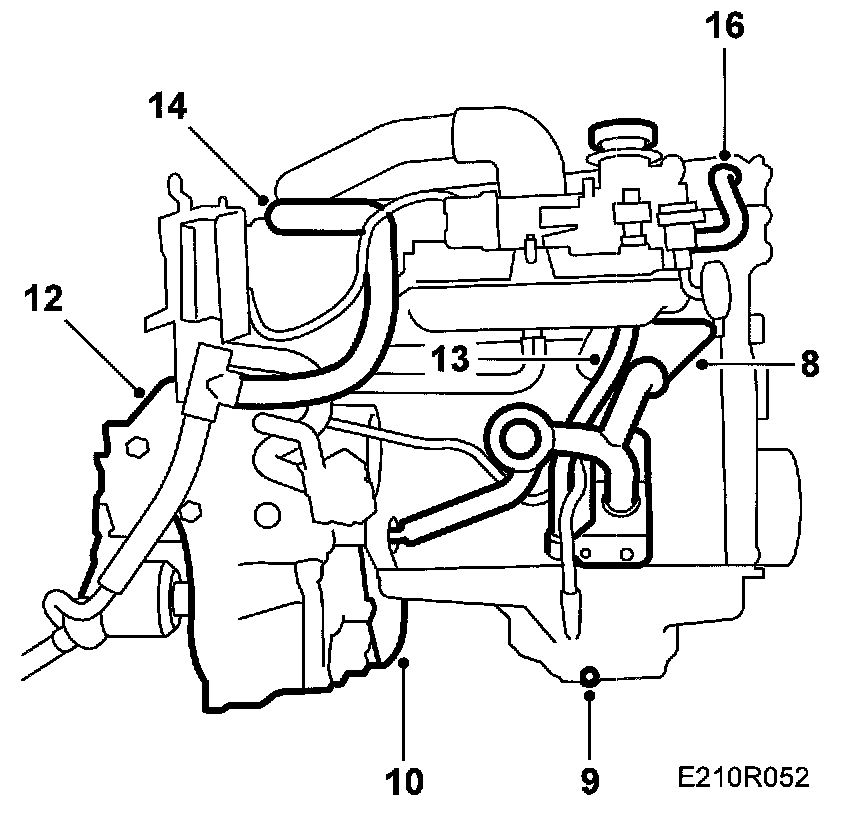 13. Remove the oil filler pipe from its bracket and disconnect the preheating hoses from the throttle body.