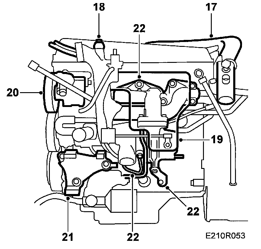 17. Remove the delivery pipe between the charge air cooler and throttle body.