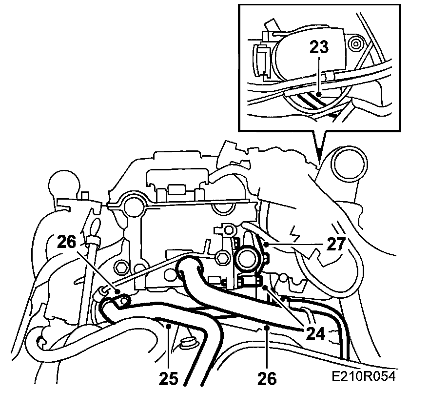 23. Remove the throttle body preheating hose.