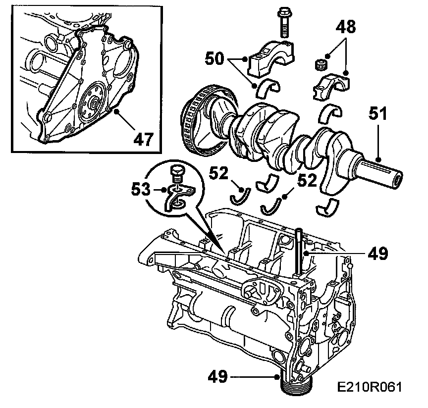 50. Remove all main bearing caps and lift out the crankshaft.