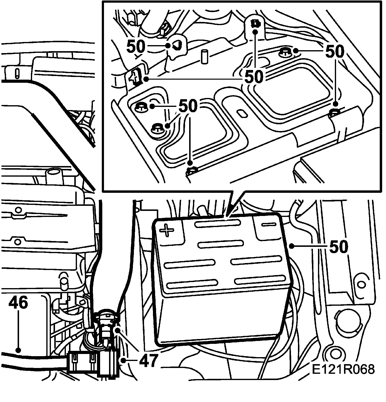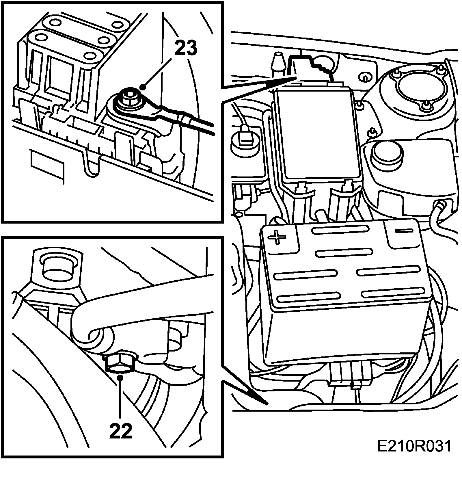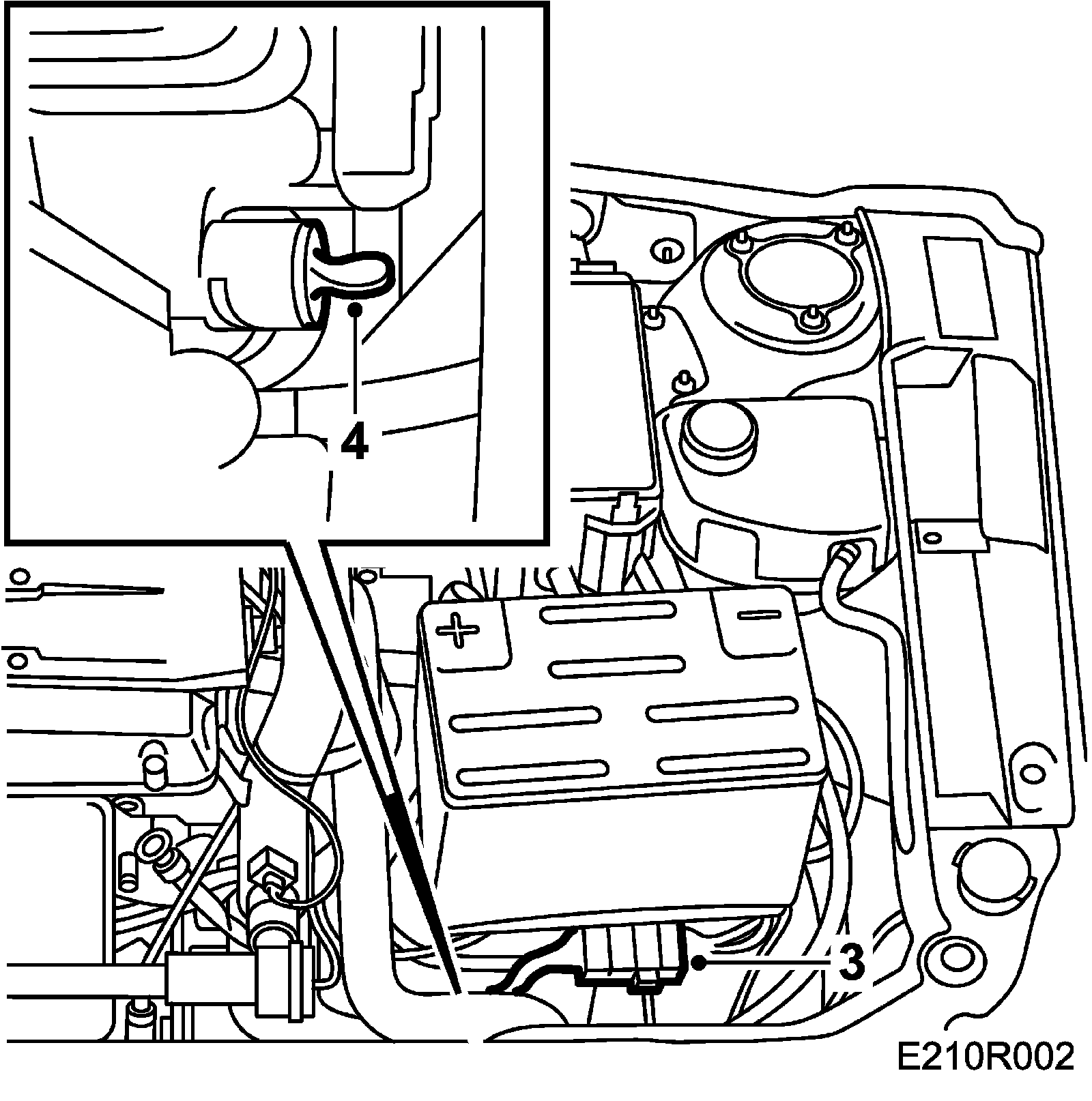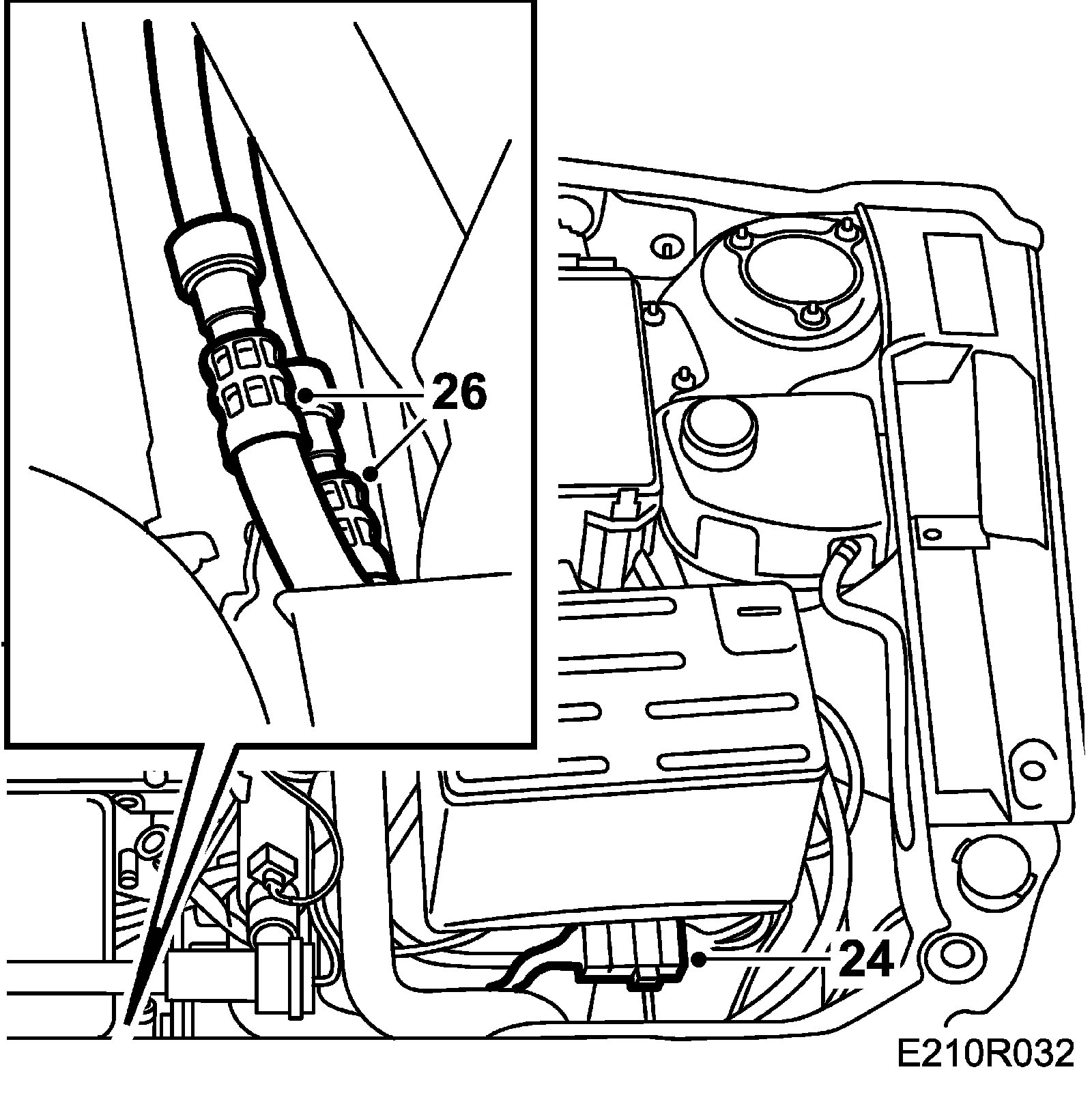 50. Fit the battery tray, the battery, the cover over the intake manifold and the battery cover. Remove the wing covers. Fit the vacuum hose to the heat exchanger shut-off valve (cars with AC).