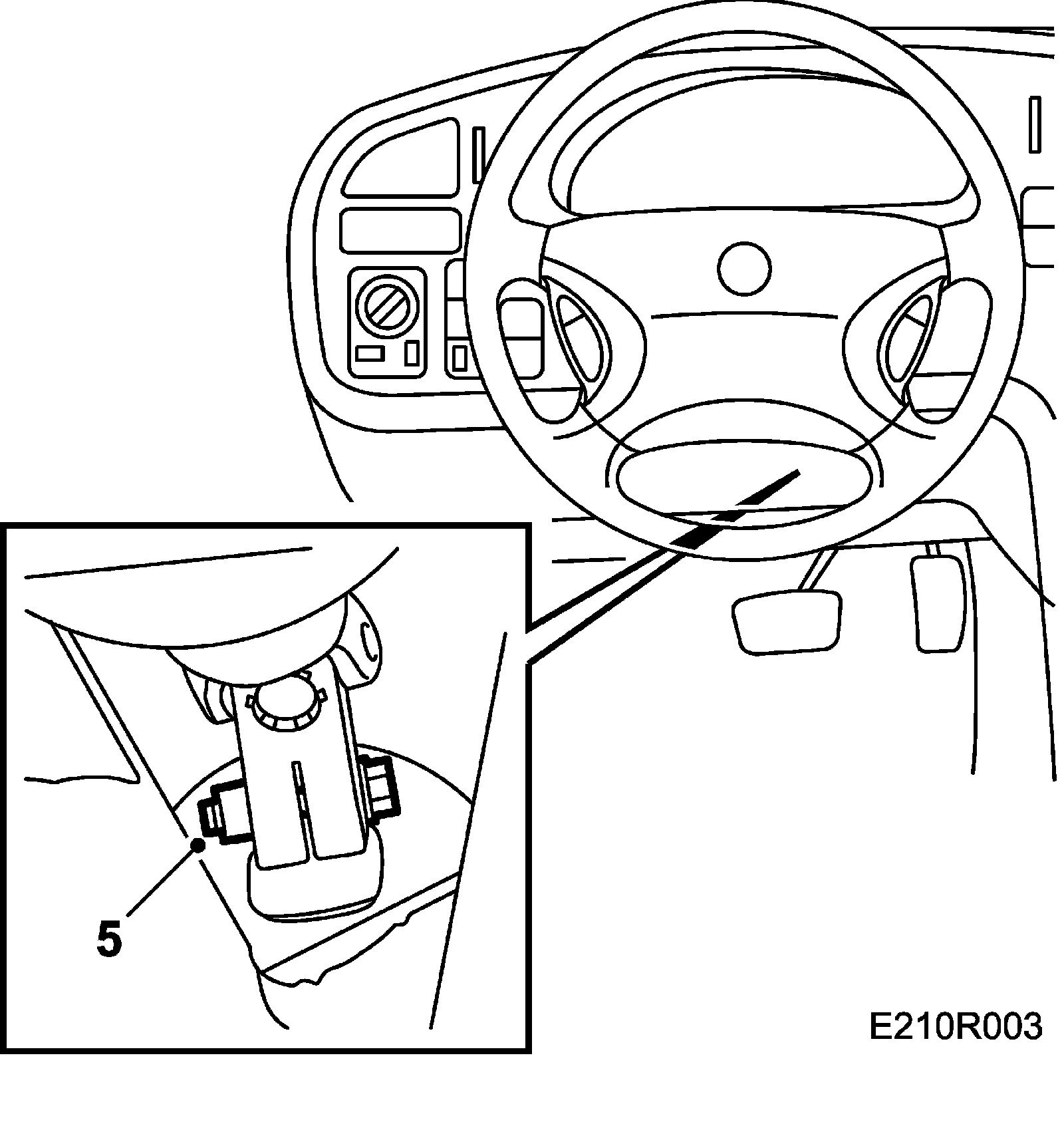 5. Turn the front wheels to the straight ahead position and secure the steering wheel in this position. Undo the steering column locking bolt and move the steering column upwards.