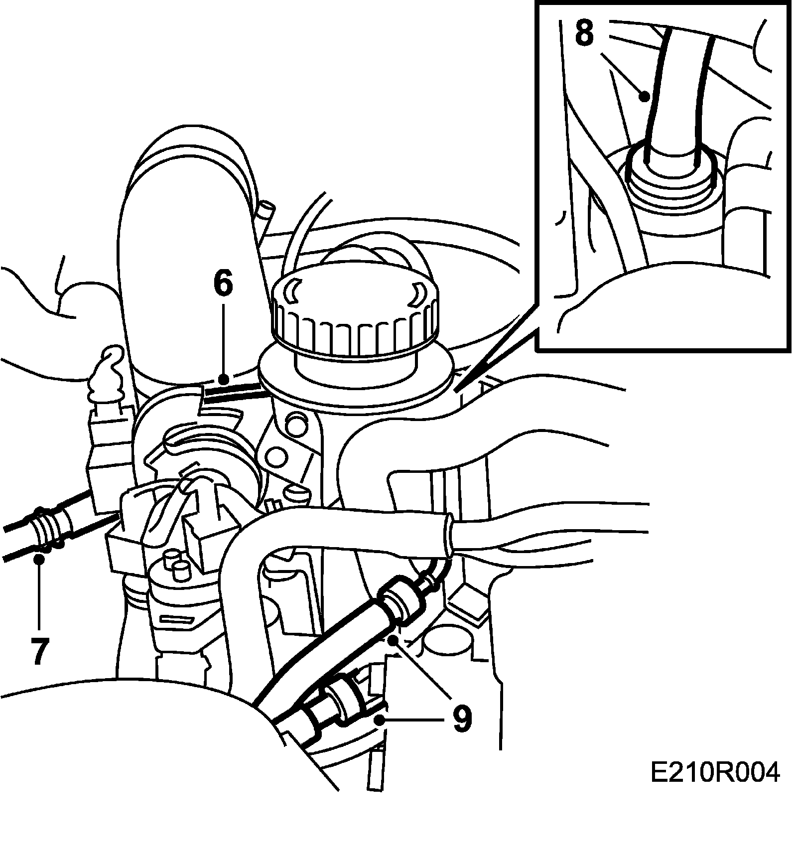 9. Fit the A/C-compressor and air filter housing retaining nuts and hose.