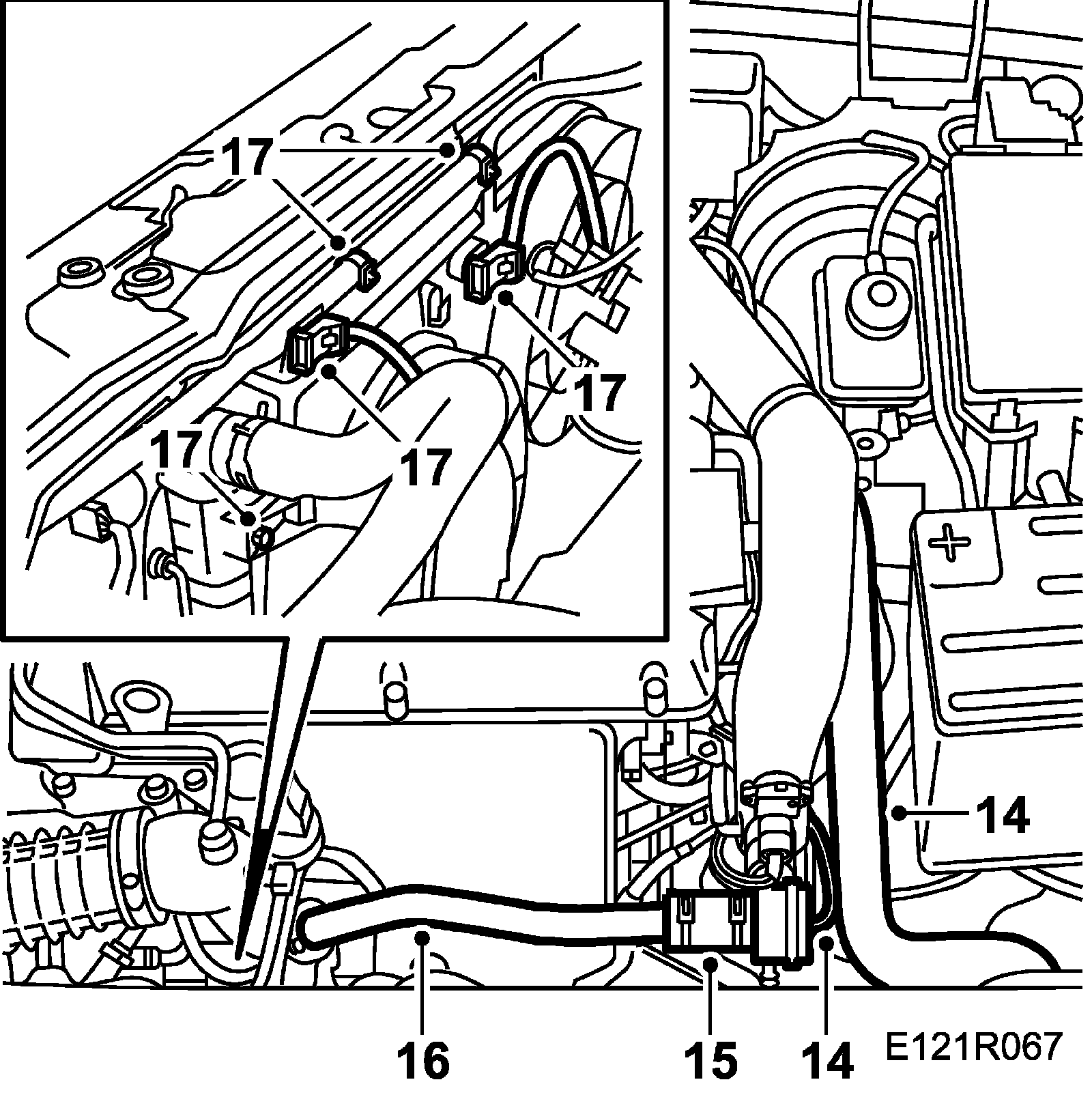 17. Move the bleeder hose up under the main fuse box. (aut)