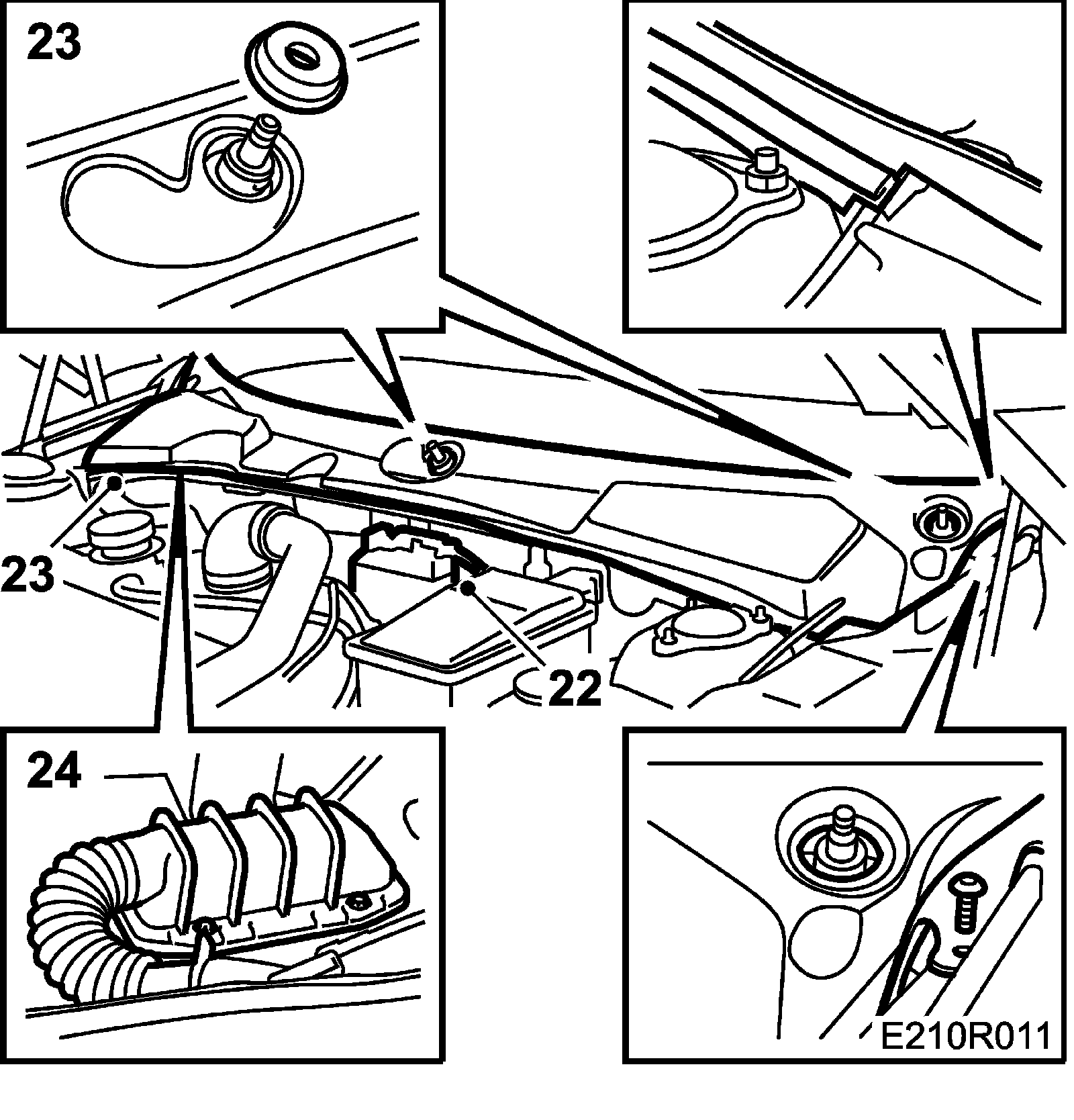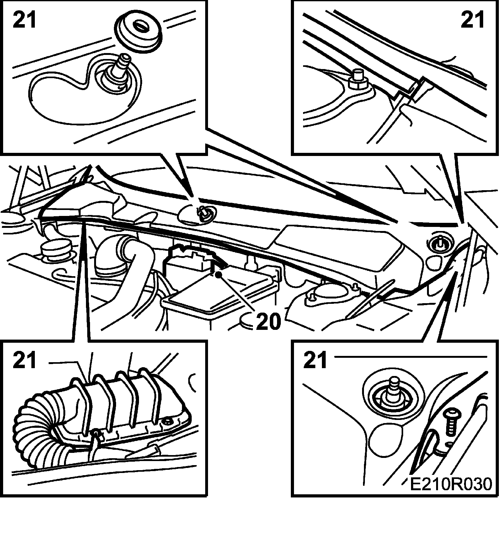 21. Fit the engine control module, the cover panel over the wiper mechanism and the wiper arms.