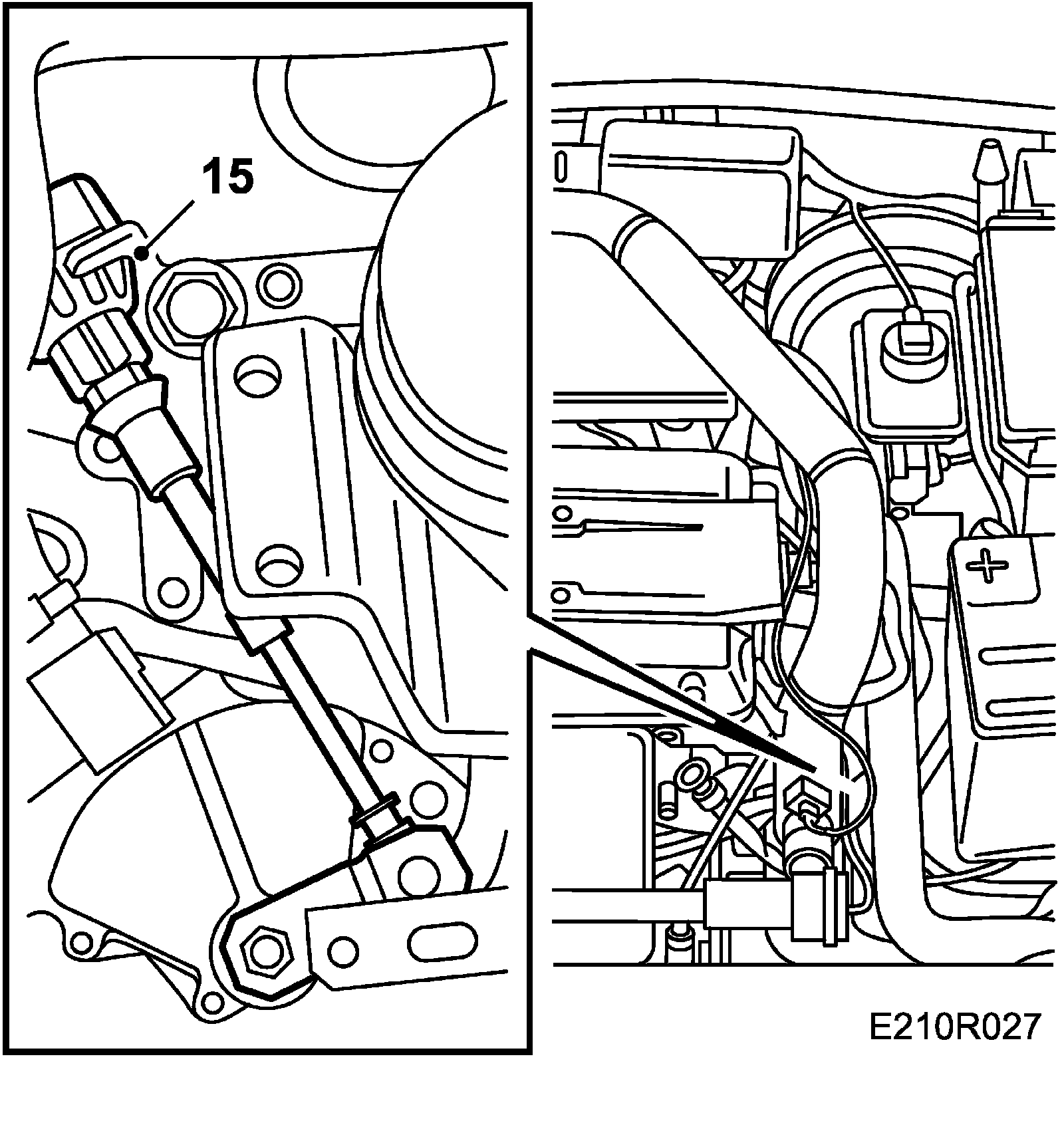 13. (auto) Disconnect the selector lever cable and bend it aside against the bulkhead.
