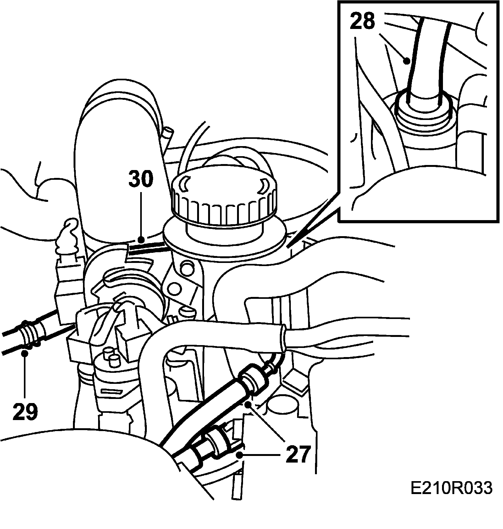 28. Connect the vacuum hose from the brake servo to the intake manifold.