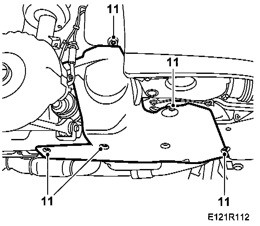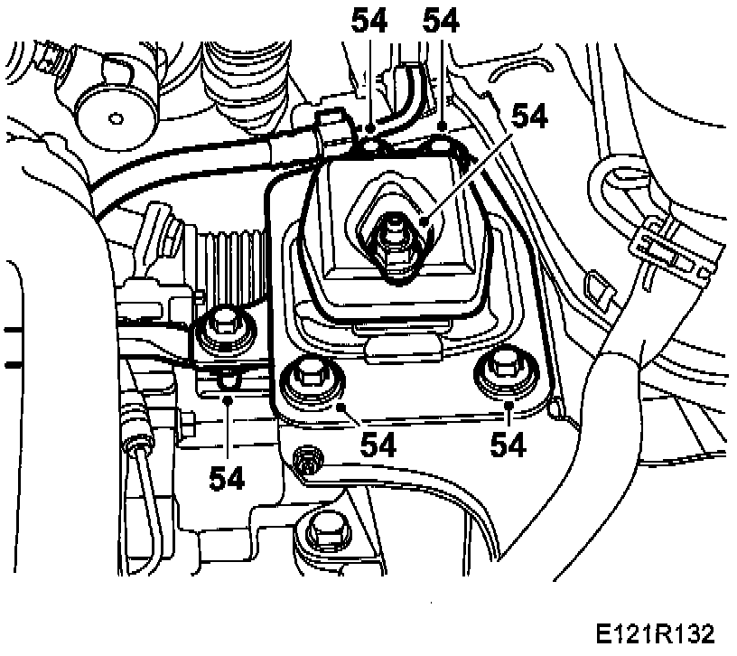 53. Unload the left-hand engine pad by positioning a jack under the gearbox.