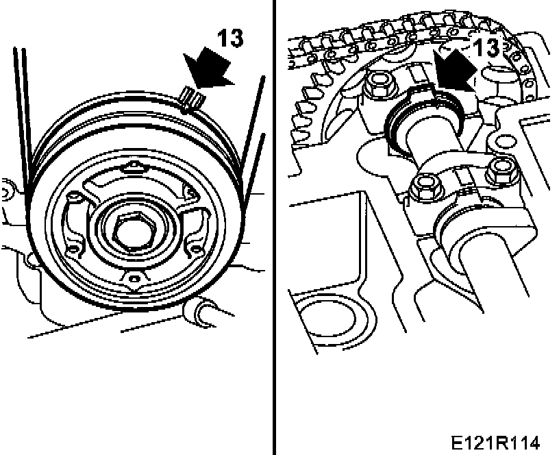 Note: Check that the timing cover marking corresponds with the pulley before it is lifted off.