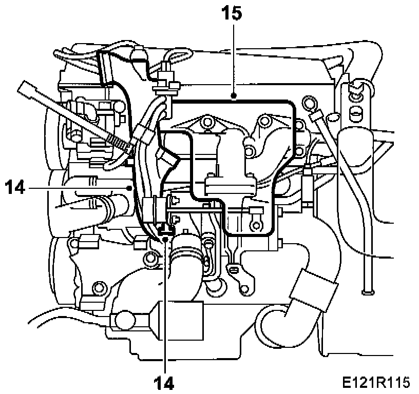 14. Remove the engine lifting eye and the turbocharger intake pipe and solenoid valve.