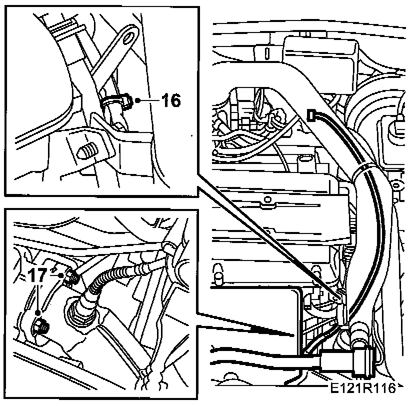 50. Remove the two bolts in the subframe holding the front torque arm. (On relevant models)