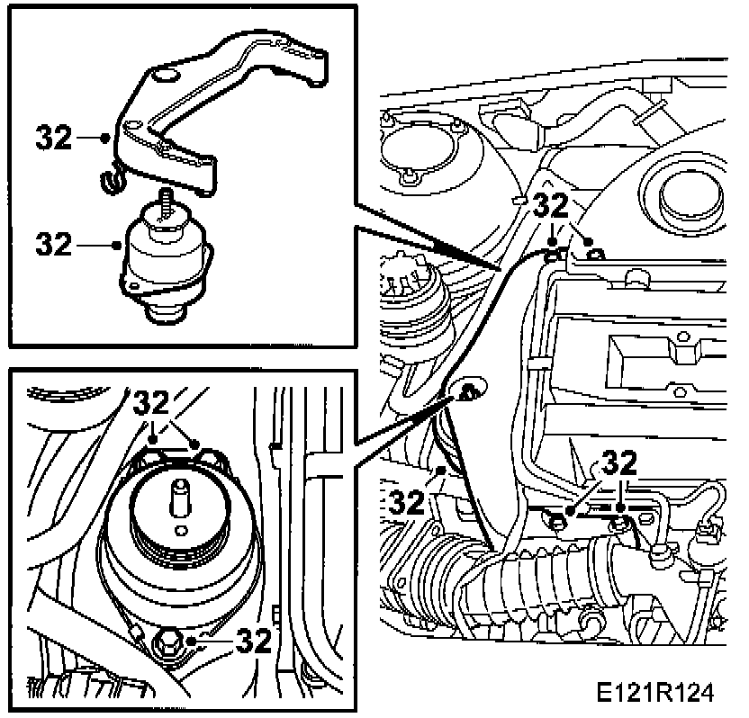 32. Remove the bracket to the right-hand engine mounting and the engine pad.