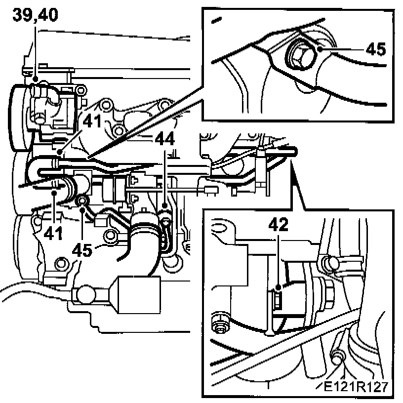 42. Detach the two longitudinal coolant pipes from the engine block.