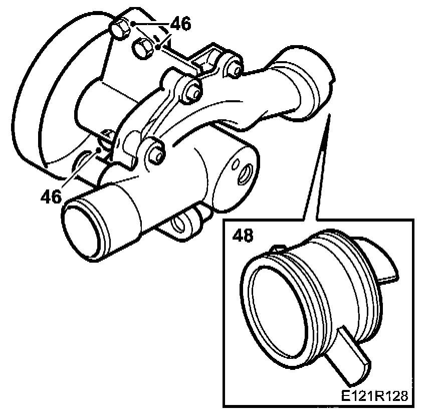 44. Undo the coolant pipe bolt slightly (at the turbocharger) from the coolant pump.