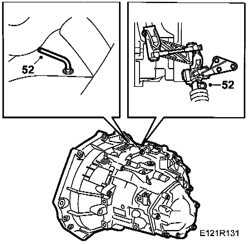 52. Man: Lock 4th gear by inserting 87 92 335 Lock pin. Undo the clamp slightly and pull the selector rod out of the linkage.