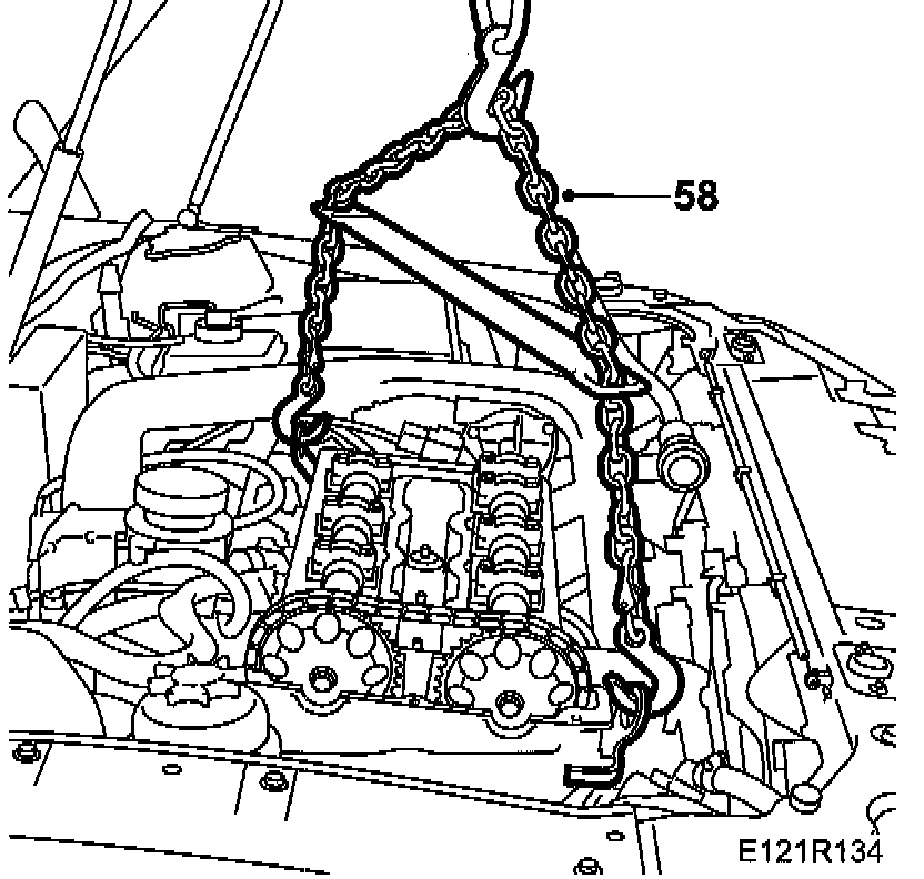 57. Fit 83 96 178 Lifting eyes with bolt and washers or an M10 nut between the cylinder head and bracket.