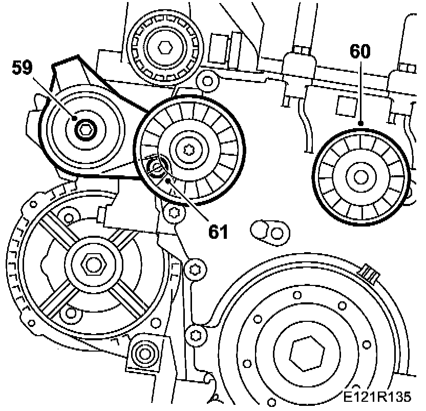 59. Move the engine slightly to the left and remove the belt tensioner.
