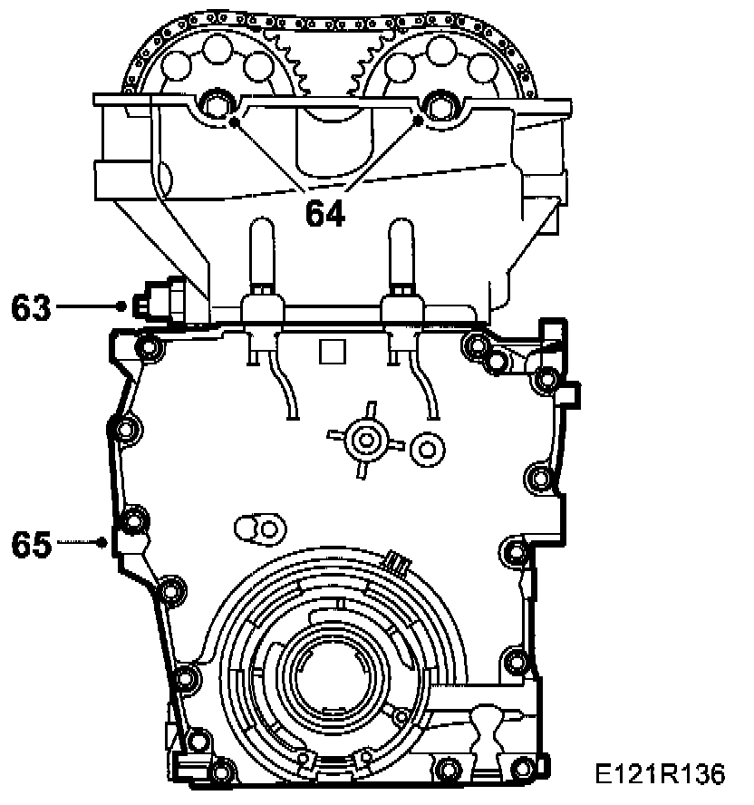66. Remove the timing cover. Move the engine to the left. Raise and lower respectively to remove the cover.