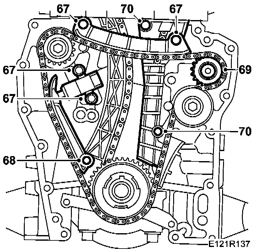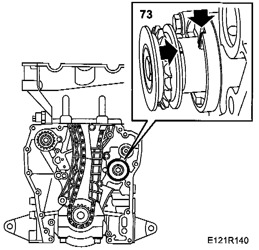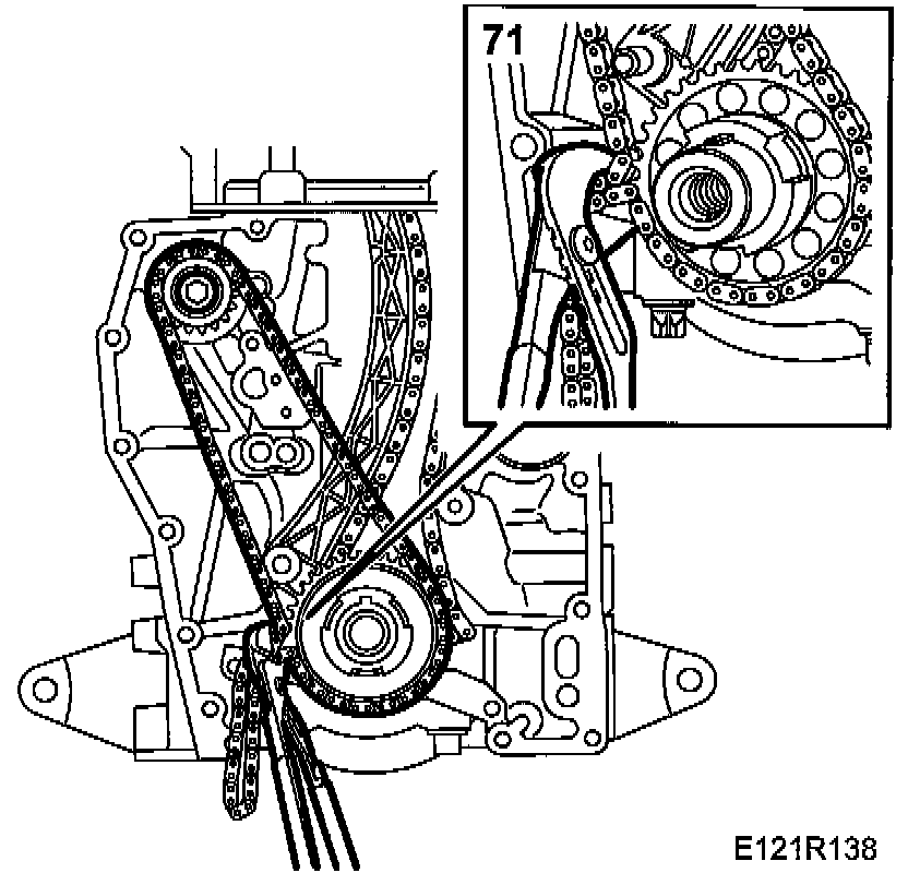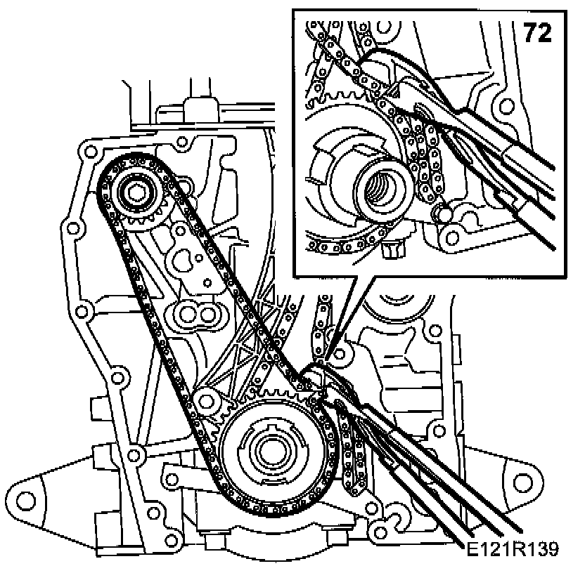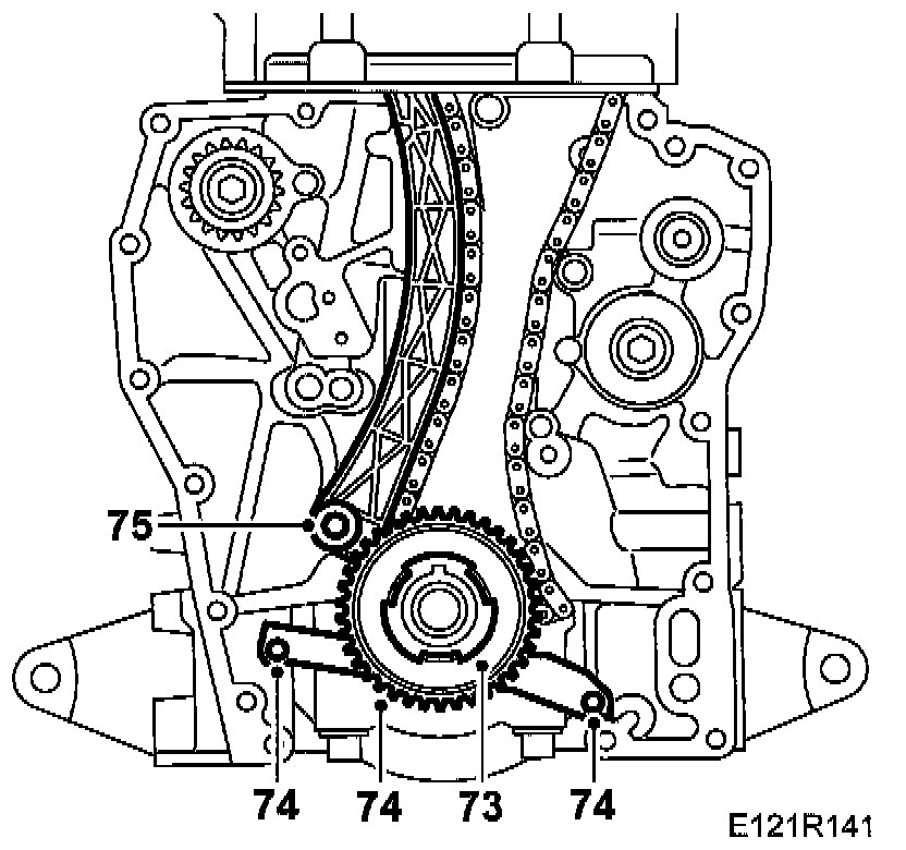 74. Remove the timing chain guard and remove the chain complete with sprocket.