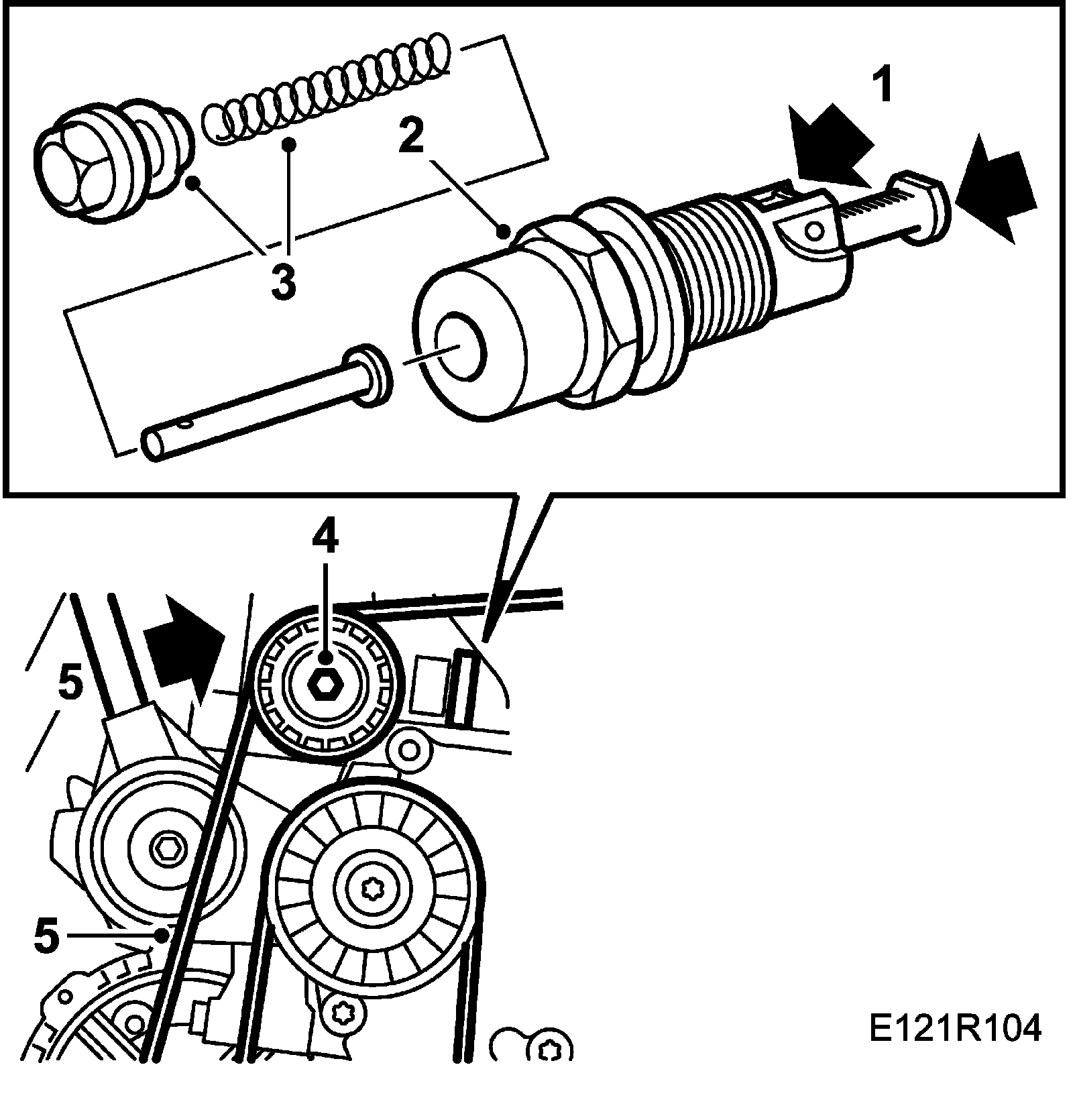 4. Take the strain off the belt tensioner with belt tensioner reliever 83 95 254 and insert a 3 mm Allen key in the hole.