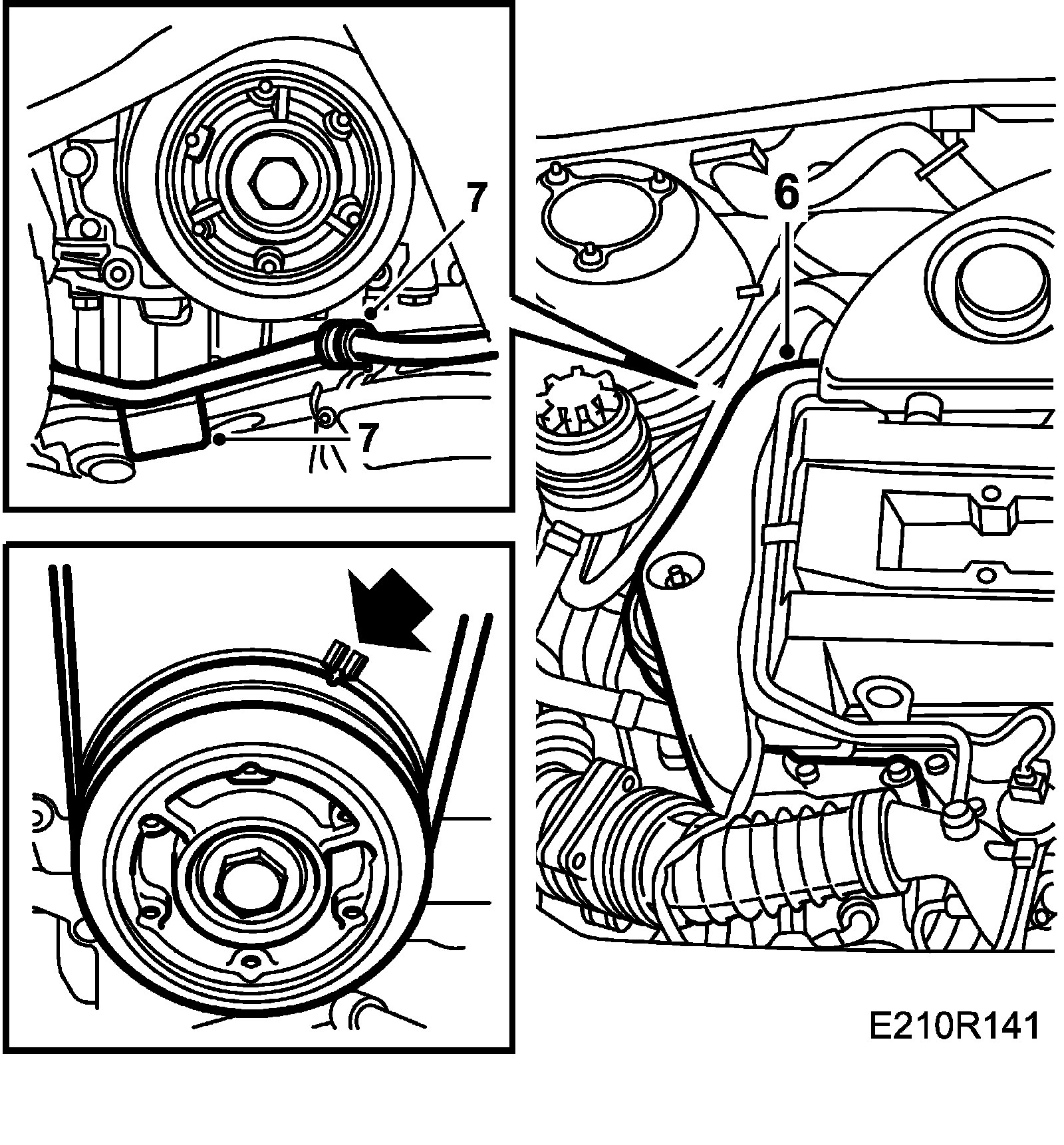 8. Start the engine and run it at idling speed for a while. Switch off the engine and check that the belt is positioned correctly.