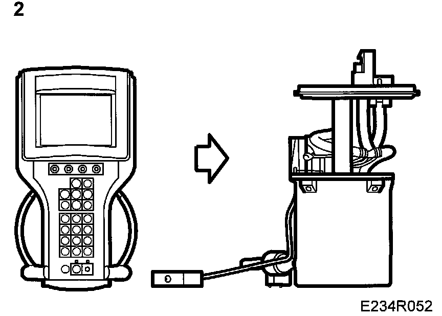 2. Run the pump with the diagnostic tool until the pressure gauge stops rising. Stop the pump. The residual pressure after 20 minutes must be min. 2.3 bar (33 psi).