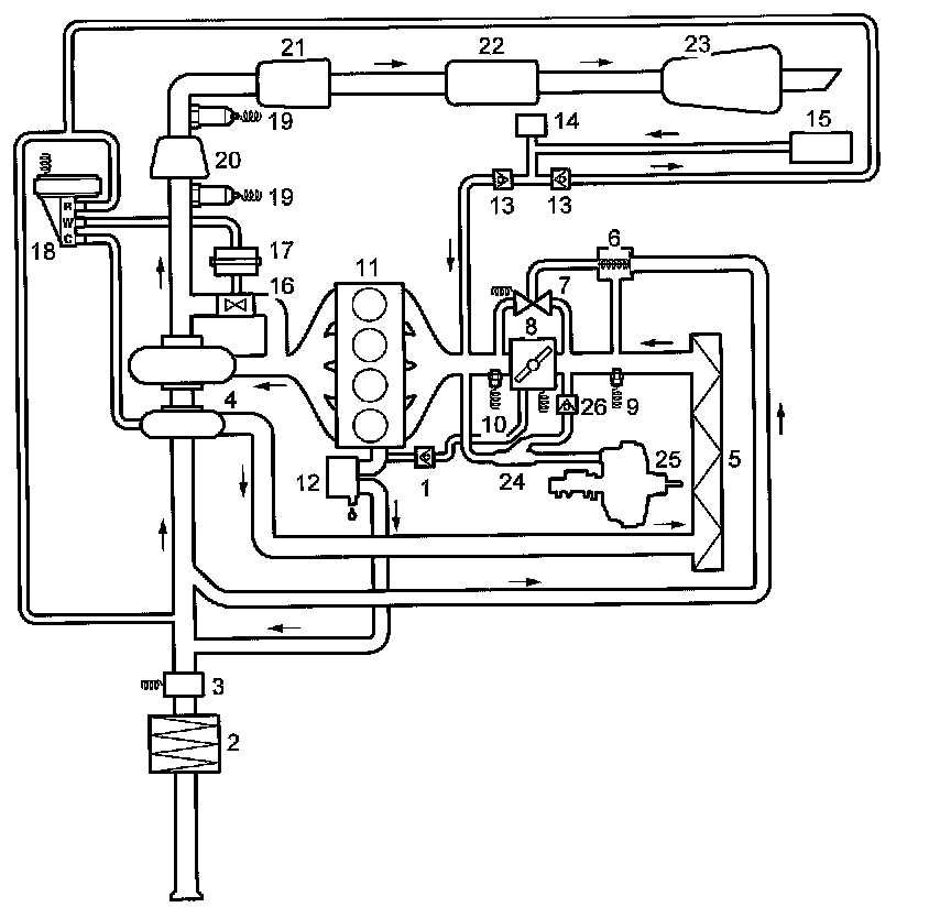 System diagram - intake, turbo, exhaust - 4-cyl.