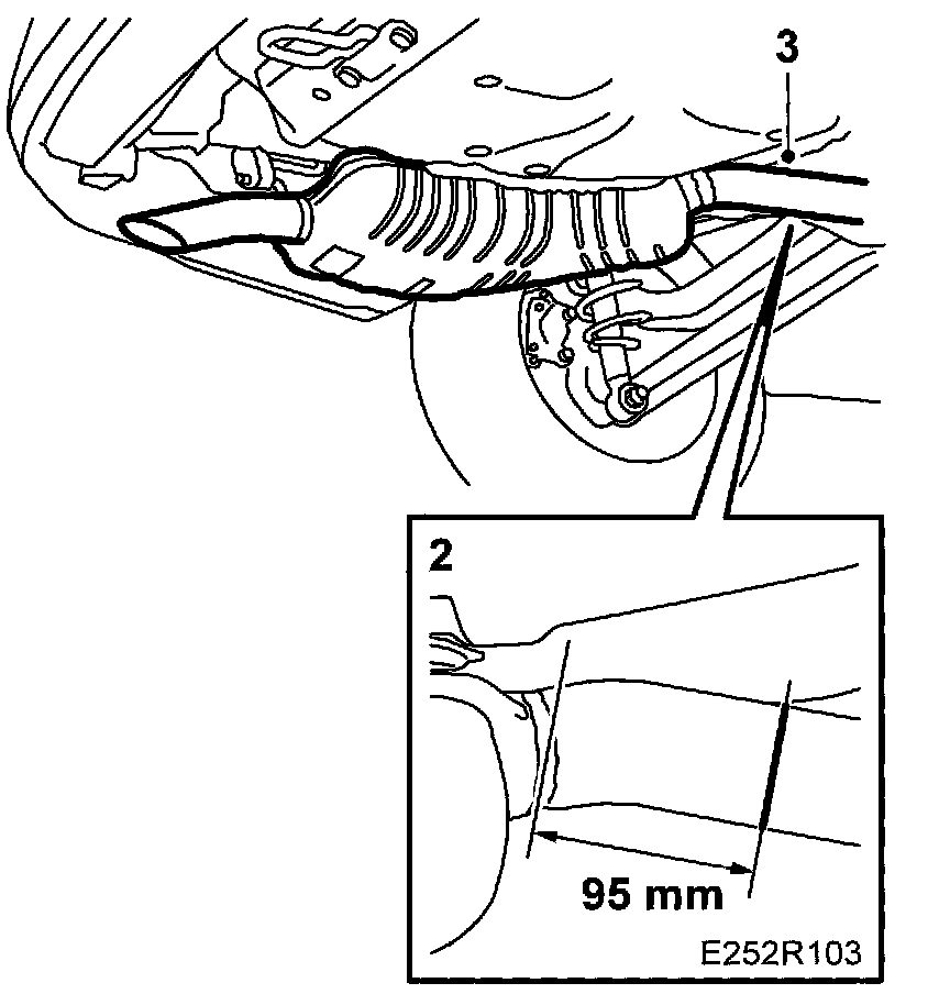 2. Mark the underside of the exhaust pipe 95 mm from the joint where it is welded to the rear silencer.