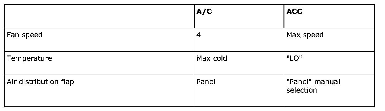 Check the temperature 50 mm inside the centre panel outlet. Read the temperature after 5 minutes.