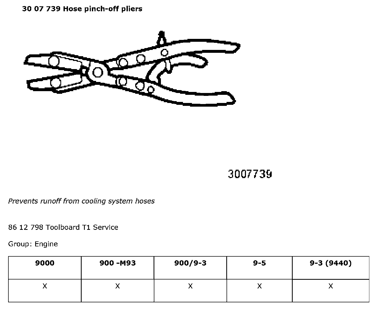 30 07 739 Hose Pinch-off Pliers: